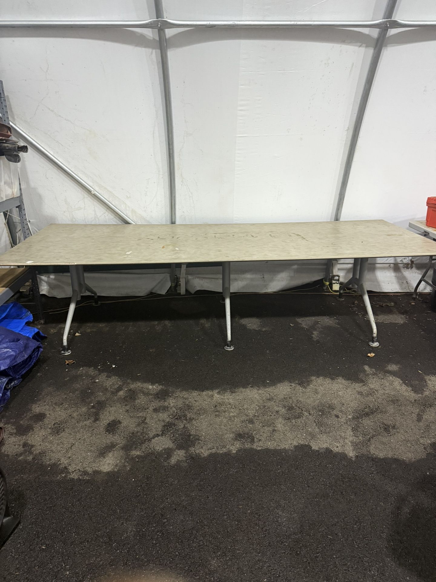 4 x 10 craft table 29 inches tall I believe it’s laminated PVC very heavy. How’s sticker residue from logo that was on it when I bought it. $50 or best offer.