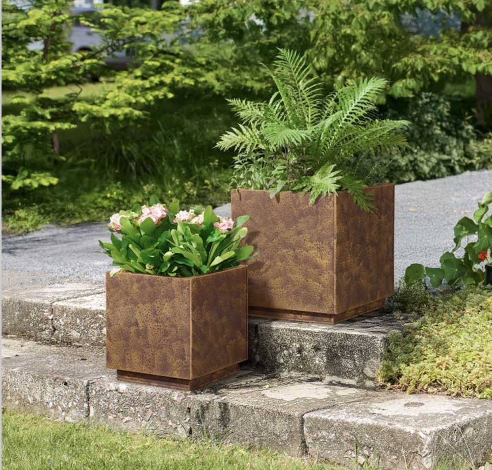 Corten Style Planters, Set of Two
