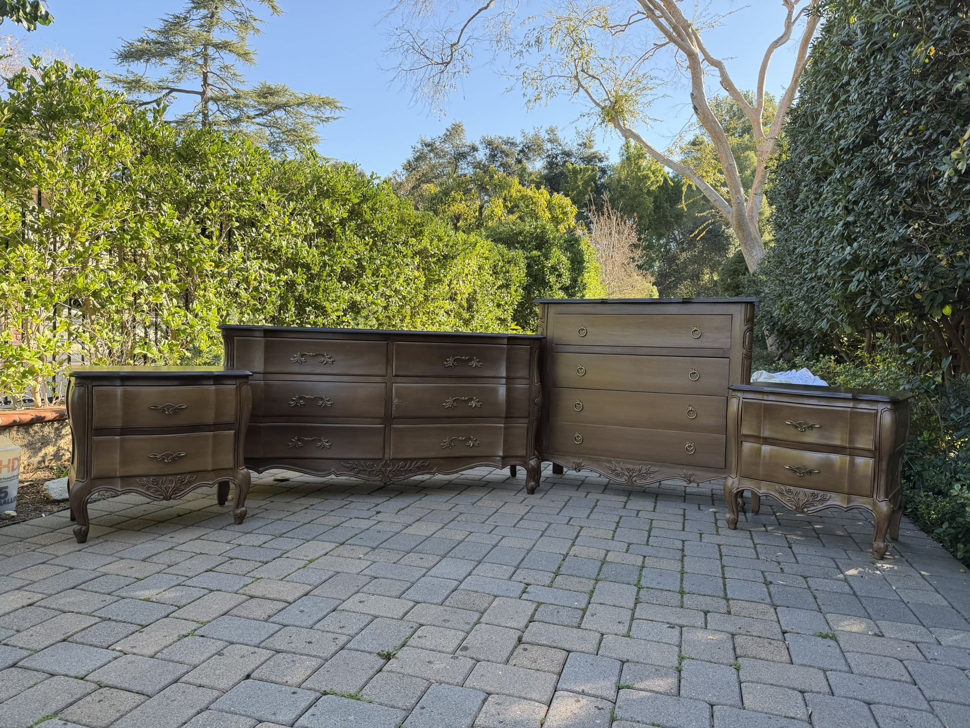 Vintage furniture set, message for more photos! Looking for $500 for the set but will also sell individual pieces. Custom brass handles.