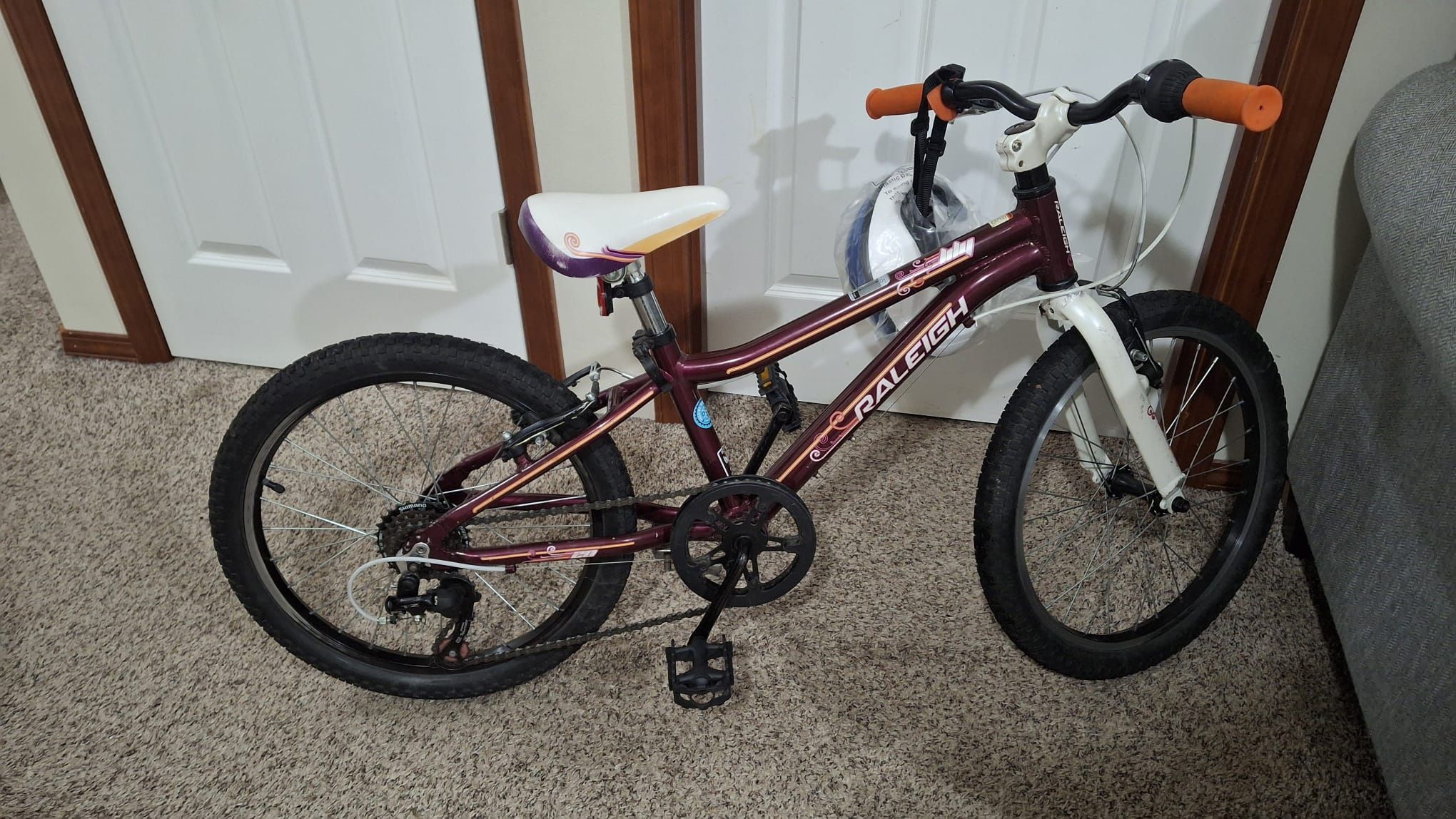 Clean, nothing wrong with it. Also comes with a brand new helmet. For ages 4-9 Barely used