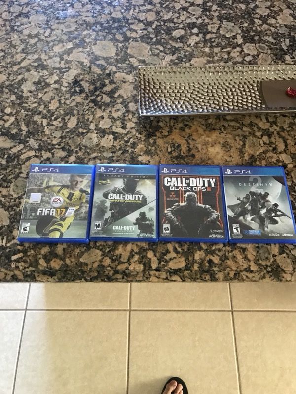 Destiny-$5 Destiny 2 -$15 Battlefront Star Wars-$10 Assassins’ Creed Syndicate- SOLD FIFA 17-$15 Tom Clancy’s The Division- SOLD Call of Duty Infinite Warefare/Legacy Edition-$15 Black Ops 3 - $15