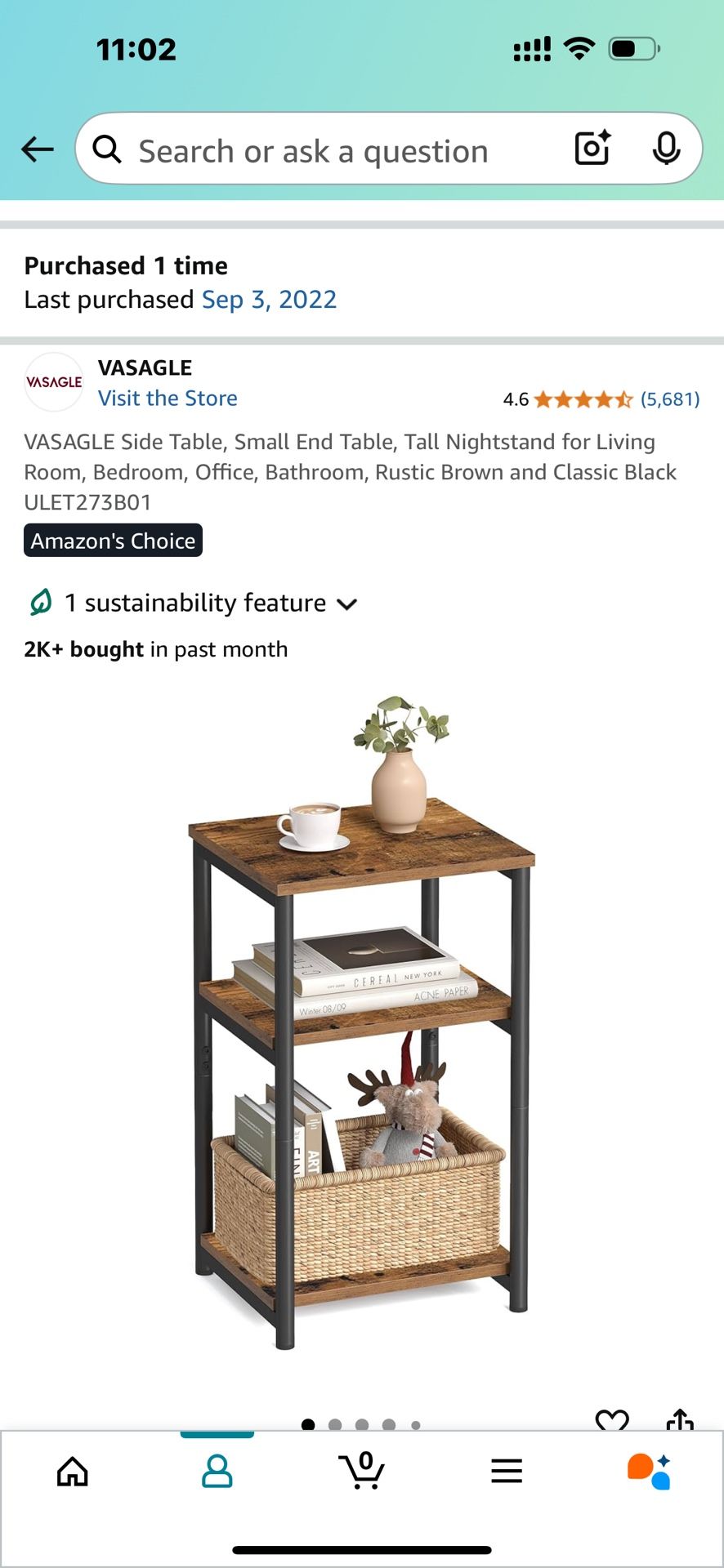 Excellent condition. Vasagle End Table/Night Stand 11.8"D x 13.4"W x 22.8"H