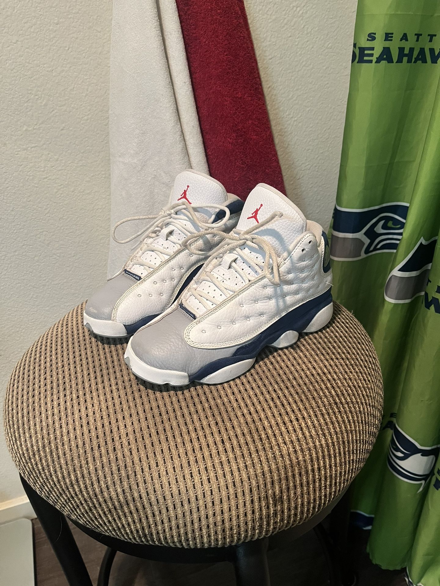 Jordan Retro 13 French Blue Youth Size 5 = Women’s size 6.5 White/Blue/Gray No Box Pretty sweet Jordan 13s that I got for my wife some time ago but she doesn’t wear them anymore, mostly transitioned into vans and lightweight boots. Pretty good shape sneakers, clean soles. Trades for Carhartt and vintage clothes: (S/M Men’s or S Women’s) 925 silver, Pokémon, and other neat things considered! Pickup, or Meetup in Puyallup
