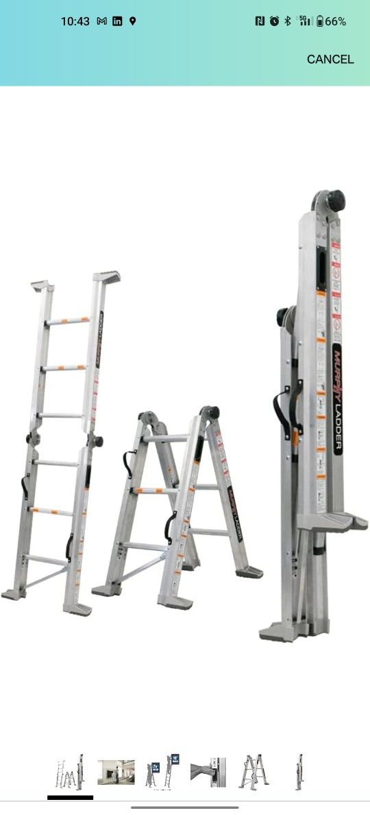 Amazon is selling this for $200 plus tax Brand New in the box 7 ft. Height 10 ft. Reach Aluminum Fully Compactable Multi-Position Ladder 375 lbs. Load Capacity Type IAA Duty Rating by MURPHY LADDER Product Overview Most compact, hassle-free, dependable ladder you will ever own Take it everywhere; store it anywhere Reach height 10 ft. based on 5 ft. 6 in. person with 12 in. reach Model#: ML7 The MURPHY LADDER goes where no other ladder can go with its safe, sturdy and stowable design. The MURPHY LADDER features pinch free design, fully compactable for storage, non-marring feet, and easy maneuverability. Easy to use compactable design is optimal for maximizing storage space or transporting on the go. Stepladder position has a total height of 3'5" with a 7'6" reach. Single ladder position has a total height of 7 ft. with a 10 ft. reach. Reach is based on 5 ft. 6 in. person with 12 in. reach. Type IAA duty rating and load capacity of 375 lbs. Pinch free design Fully compactable Non-marring feet Easy maneuverability