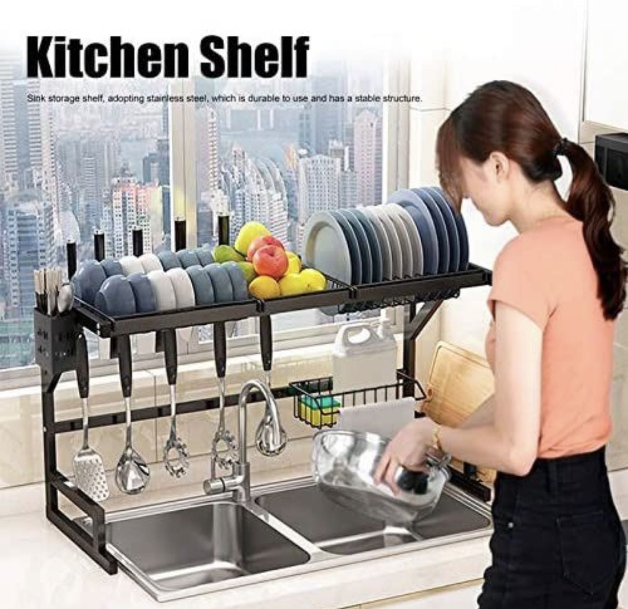 brand new in the box Original price: $105.70 + tax Joe:$ 55 😱Lowest price 🛍️Our warehouse Clearance ‼️No bargaining🙏🙏 ‼️No return or exchange ✅no reservation first come first serve ✅Pick up in walnut 91789 💰cash only Please message to me when do you want to pickup 🤝 1. Sink storage shelf, adopting stainless steel, which is Item Type: Sink Rack Material: Stainless Steel 2 Color: Black / silver Weight: Approx. 4065g / 143.4oz Product Process: Baking Varnish Product Function: Multifunctional storage such as pot cover, seasoning, spatula, chopsticks, spoon, etc. Application: Suitable for double sink (total length 85cm), for sinks within 83cm in inner diameter Installation Method: No Punching Size: Approx. 85x31.5x51.5cm / 33.5x12.4x20.3in Dish Rack Size: Approx. 30x27.4x6cm / 11.8x10.79x2.4in Bowl Rack Size: Approx. 30.5x27.5x4.5cm / 12.0x10.83x1.8in Storage Basket Size: Approx. 27x20.7x4.5cm / 10.6x8.1x1.8in, 25x11.5x7.5cm / 9.8x4.5x3.0in Chopsticks Tube Size: Approx. 8x6x12.5cm / 3.1x2.4x4.9in Chopping Board Rack Size: Approx. 21x5x11.5cm / 8.3x2.0x4.5in