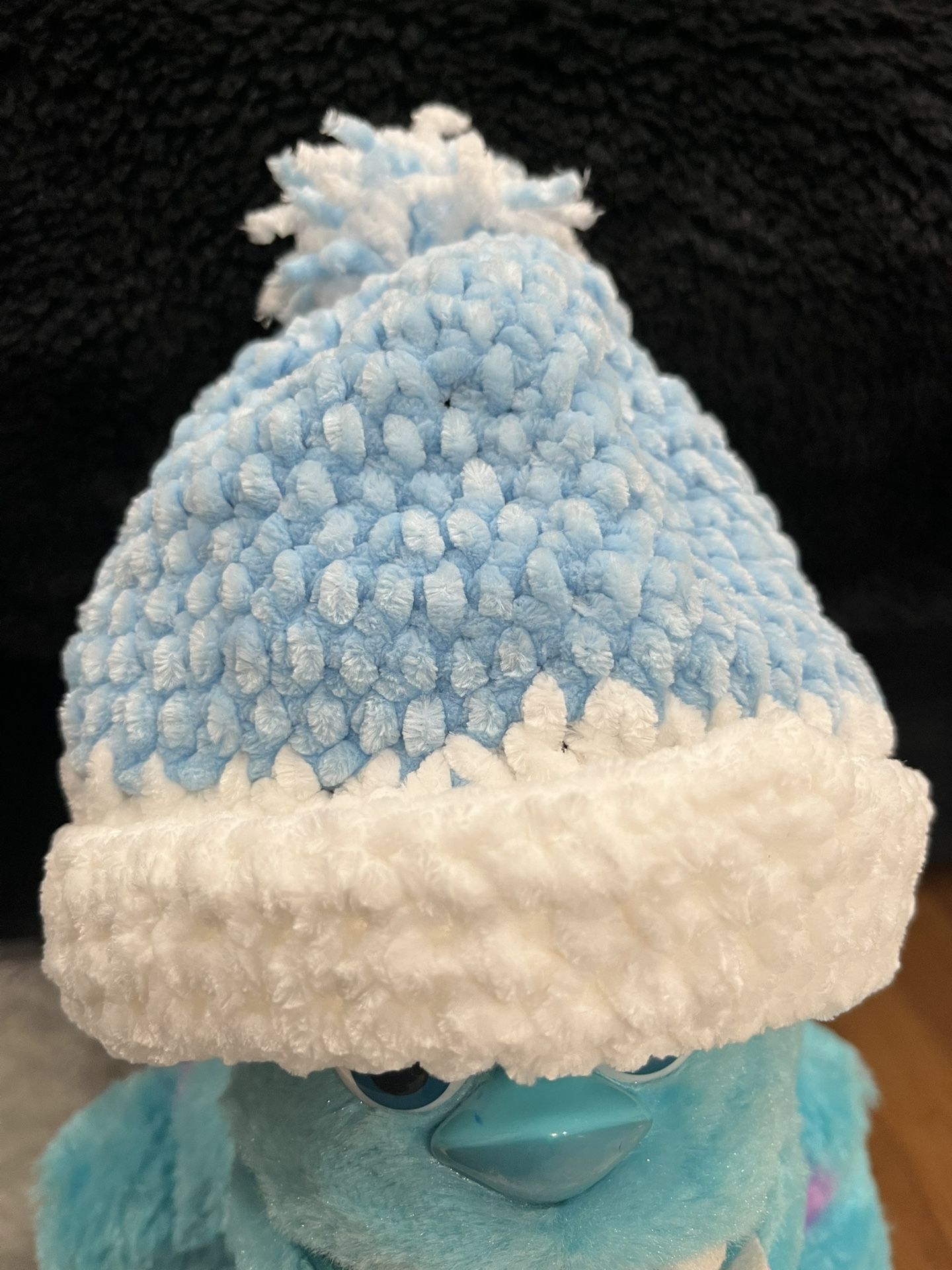 Brand new hand made woven beanie and shoes fits up to 1 years old sky-blue white color asking for $40 both and $20 each serious buyers only.