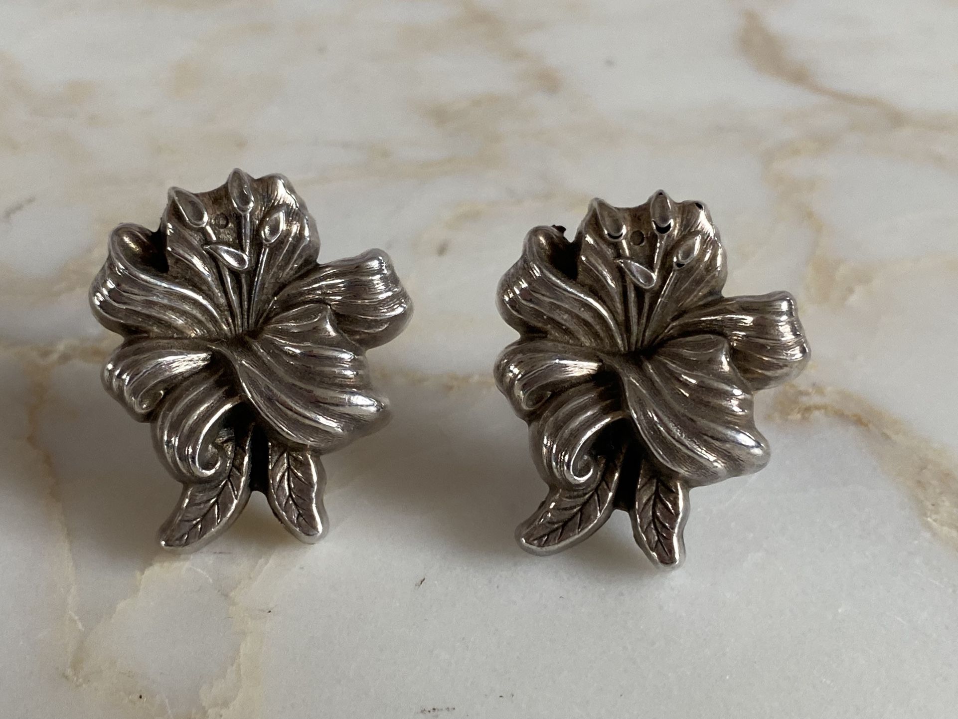 Vintage Sterling Silver flower clip ons circa 1980