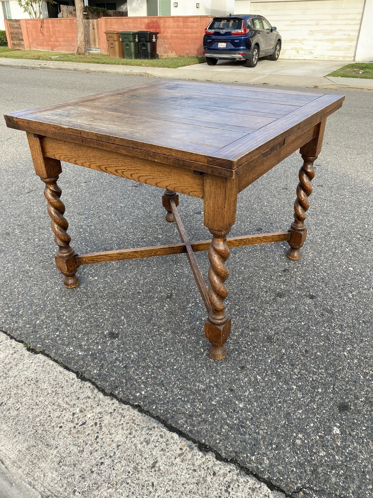 English Oak Draw Leaf Dining Table Circa 1900 Spiral Leg
