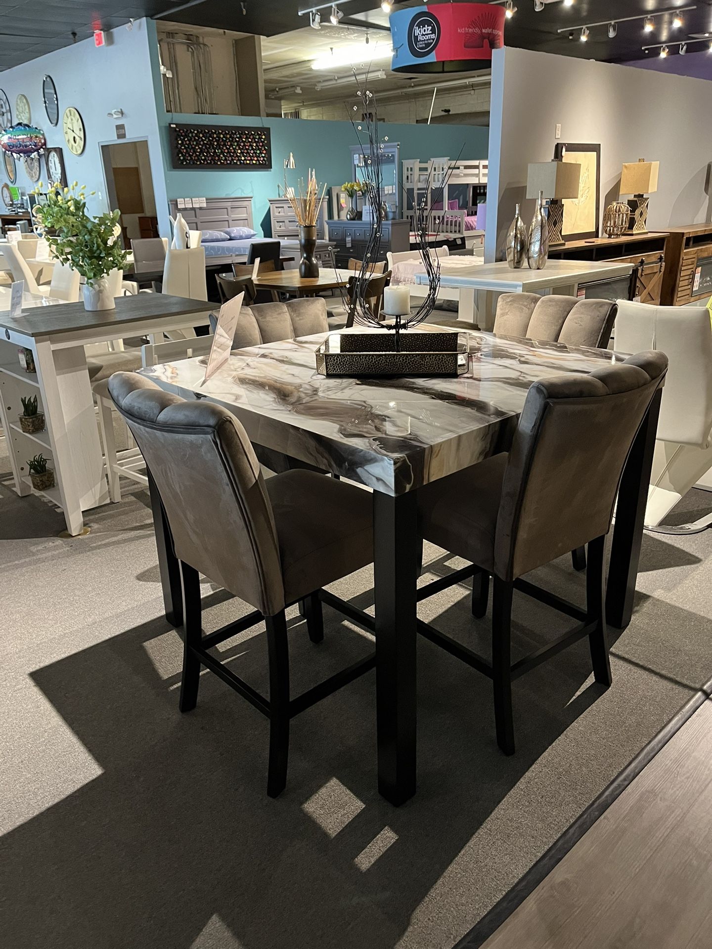 Includes: Table and 4 barstools Dimensions: 45” square and 36” high At Leon Furniture, we sell new furniture at used prices! Click on our profile to view the inventory in stock. Whether you're looking for a dresser, sofa, dining/kitchen table, king/queen/twin/full bedroom set, desk, mattress, couch, sectional, bed frame or something else, we have just what you're looking for. We've been making houses into homes since 2009 by securing special pricing on our items so that we can pass those savings on to you! Why shop at Leon Furniture? ✅Financing- Snap Financing, Progressive and Acima available with no credit check required ✅12 months no interest financing available on approved credit ✅Layaway available ✅Immediate delivery and assembly available for a small fee 🏷️Price Matching - if you find this item cheaper anywhere else, let us know and we'll match that offer! Se habla espanol For more details about this specific item, please send us a message using the Chat button below to be connected with our team or visit our website. If you'd prefer to talk to someone, please give us a call using the Call for quick info button below to get connected with our Customer Support team . We look forward to speaking with you soon!