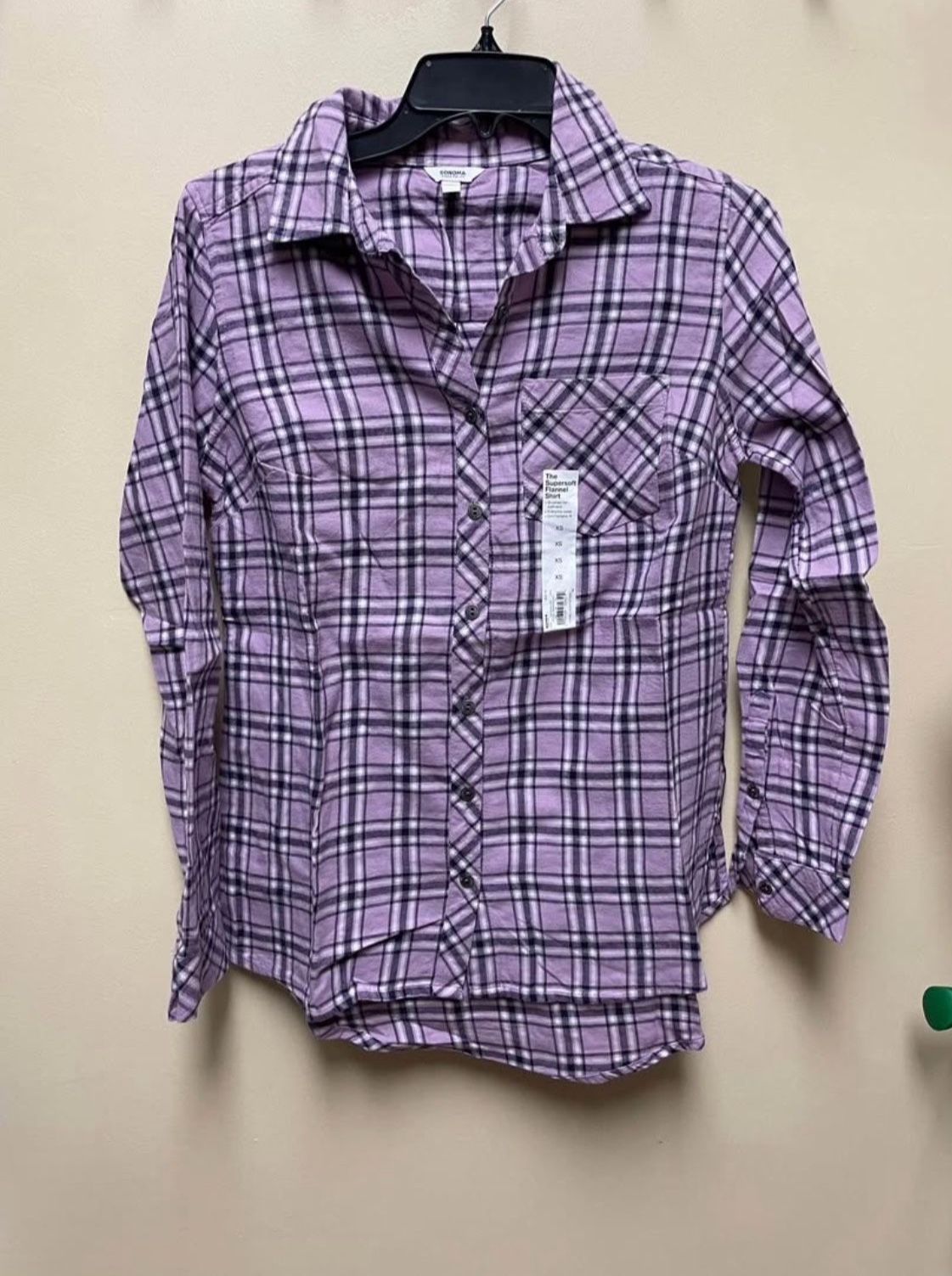 Plaid flannel top New with tags Size XS Super soft Button down and button cuff Located in Ahwatukee off the 202 Also available Weekday daytime in Mesa off the 60