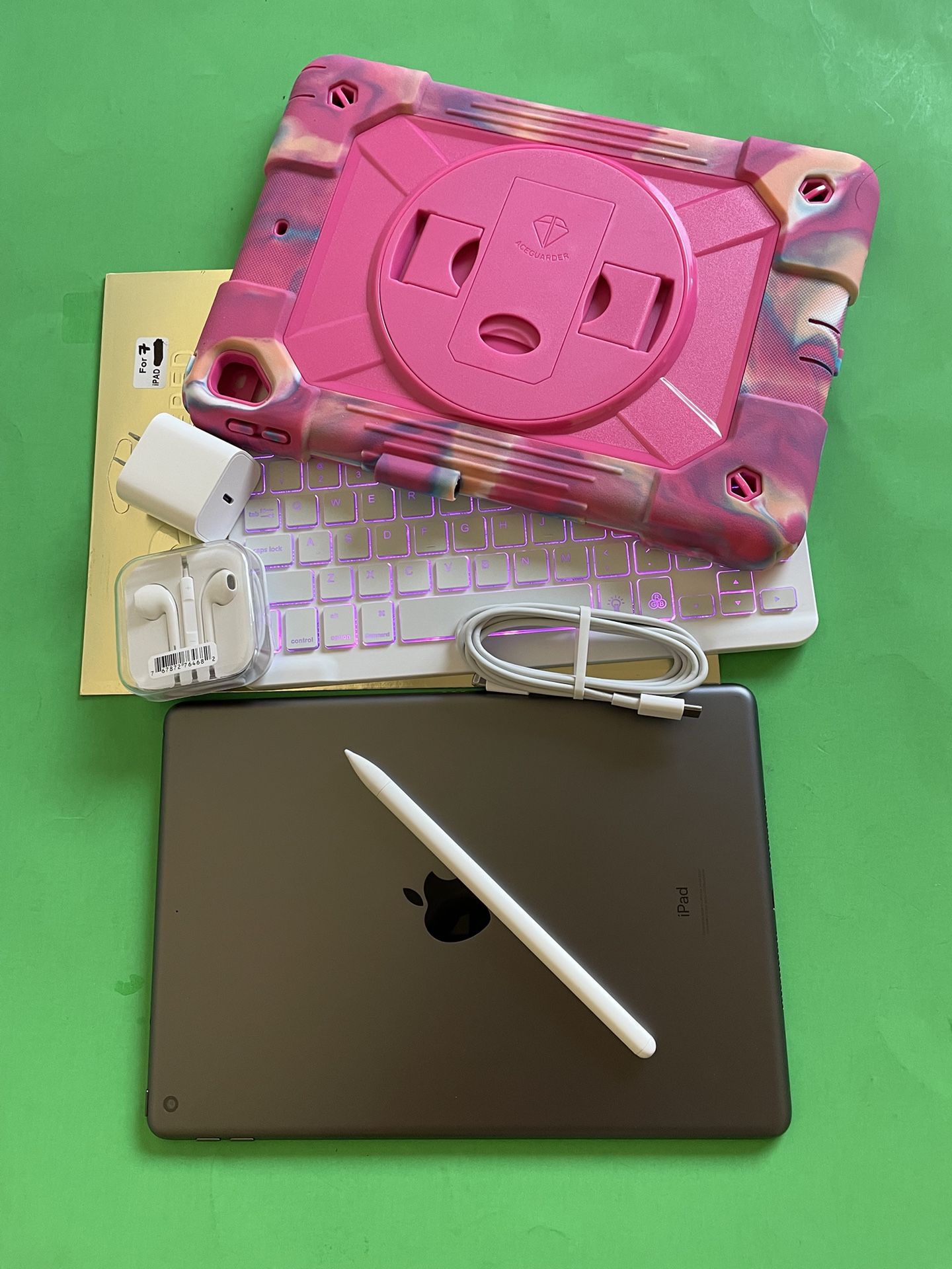 Apple IPad 7th generation (2019 Model) Excellent condition No any kind of lock No Icloud/password all clean Factory reset Ready for new user 10.2” Retina Display Touch ID / Fingerprint 2 HD cameras front & Back Siri, Facetime, GPS, calendar, app store, etc. pre installed. Long Battery life Lightening cable port (IOS 18 updated) Youtube, Netflix , prime video, Hulu, HBO, pub G all supported *Apple pencil & keyboard supported (not included) Good for gifts (birthday/christmas) school work, business work, home work, entertainment etc. Comes with Fast Charging cable (type C to lighting) Fast Charging adapter 20w (Type C) New headphone New stylus pen (not apple) works good New Hard protective case with stand (pink) New Bluetooth keyboard case with lights up feature (silver) New screen protector installed $199 firm firm (128GB $259) No trade (pick up only) Serious buyer with immediate pick up only No holding first come first serve Low ballers will be ignored Pick up El Monte (This is the WiFi only model / WiFi + cellular $239) Apple IPad 7th Generation (10.2” Retina / IOS 18 / Touch ID ) 32GB with stylus pen, keyboard, case & Accessories (128GB $249)
