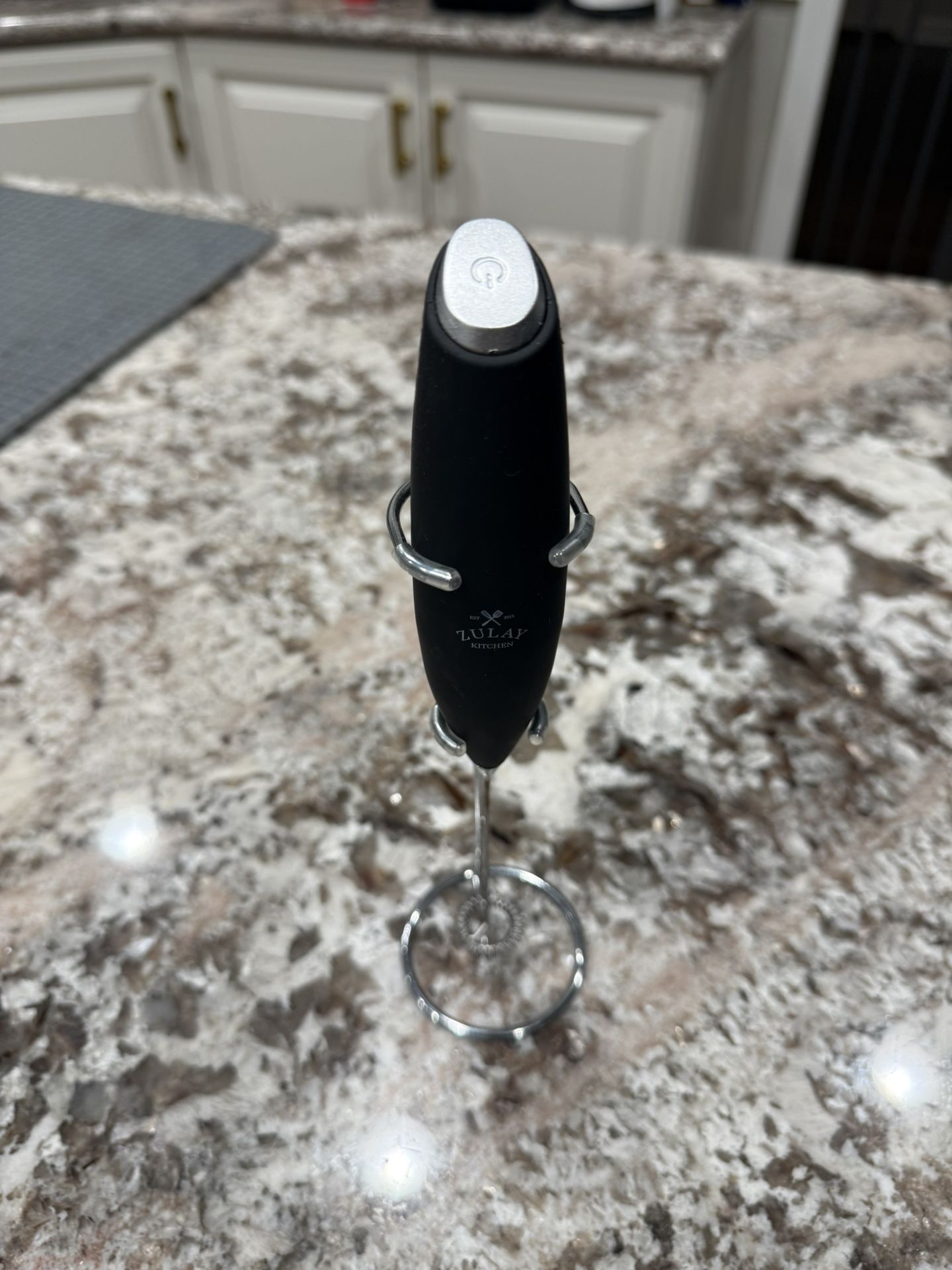 Zulay Original Milk Frother with Stand – Handheld Drink Mixer – Black This listing is for a Zulay Kitchen handheld milk frother, perfect for making lattes, cappuccinos, matcha, and more. The item is in excellent condition and works like new. πŸŒ€ Powerful & Portable – Froths your drinks in seconds with the easy one-touch power button on top. 🧼 Easy to Clean – Just run under hot water and briefly turn it on to rinse. Simple and mess-free. πŸ’ͺ Durable Design – Made with stainless steel and a sleek black handle. Comes with a metal stand for easy storage. πŸ’‘ Uses: Great for coffee, matcha, hot chocolate, protein shakes, or even whisking eggs! πŸ“¦ Includes: β€’ Zulay Milk Frother (Black) β€’ Stainless Steel Stand Batteries not included. Ships fast and securely. Message with any questions!
