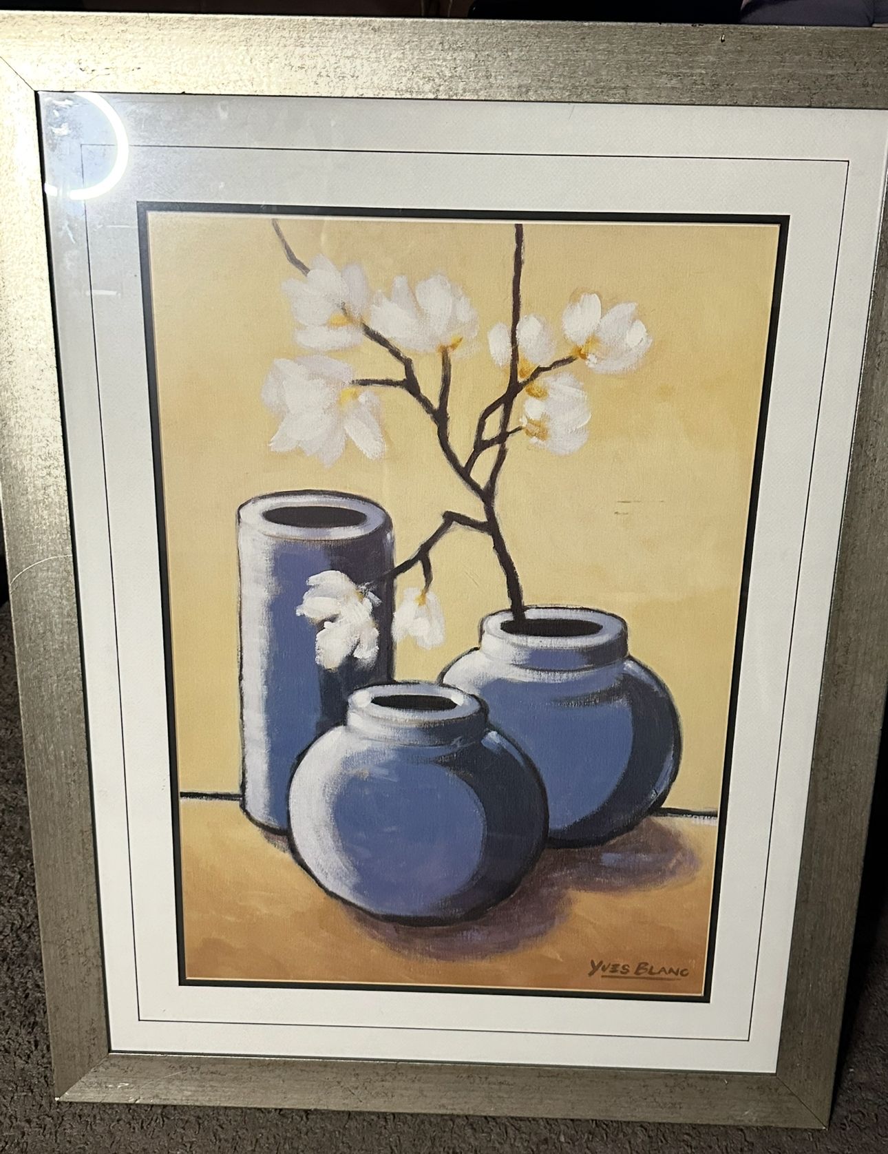 Yvez Blanc Large Framed Art Painting Still Life Flowers and Vase