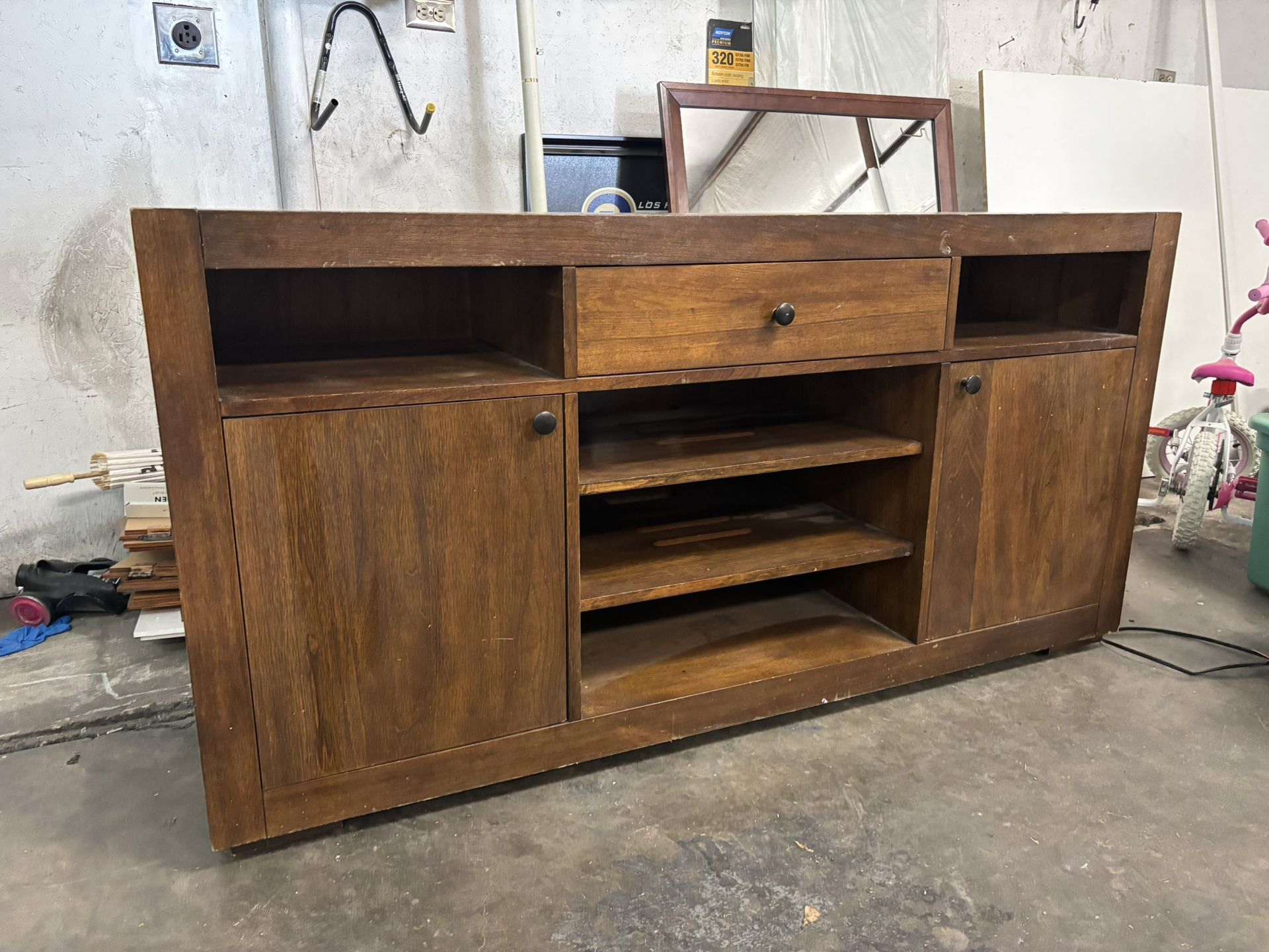 It’s a real solid heavy duty entertainment center it does got some blemishes but can be cleaned up nicely