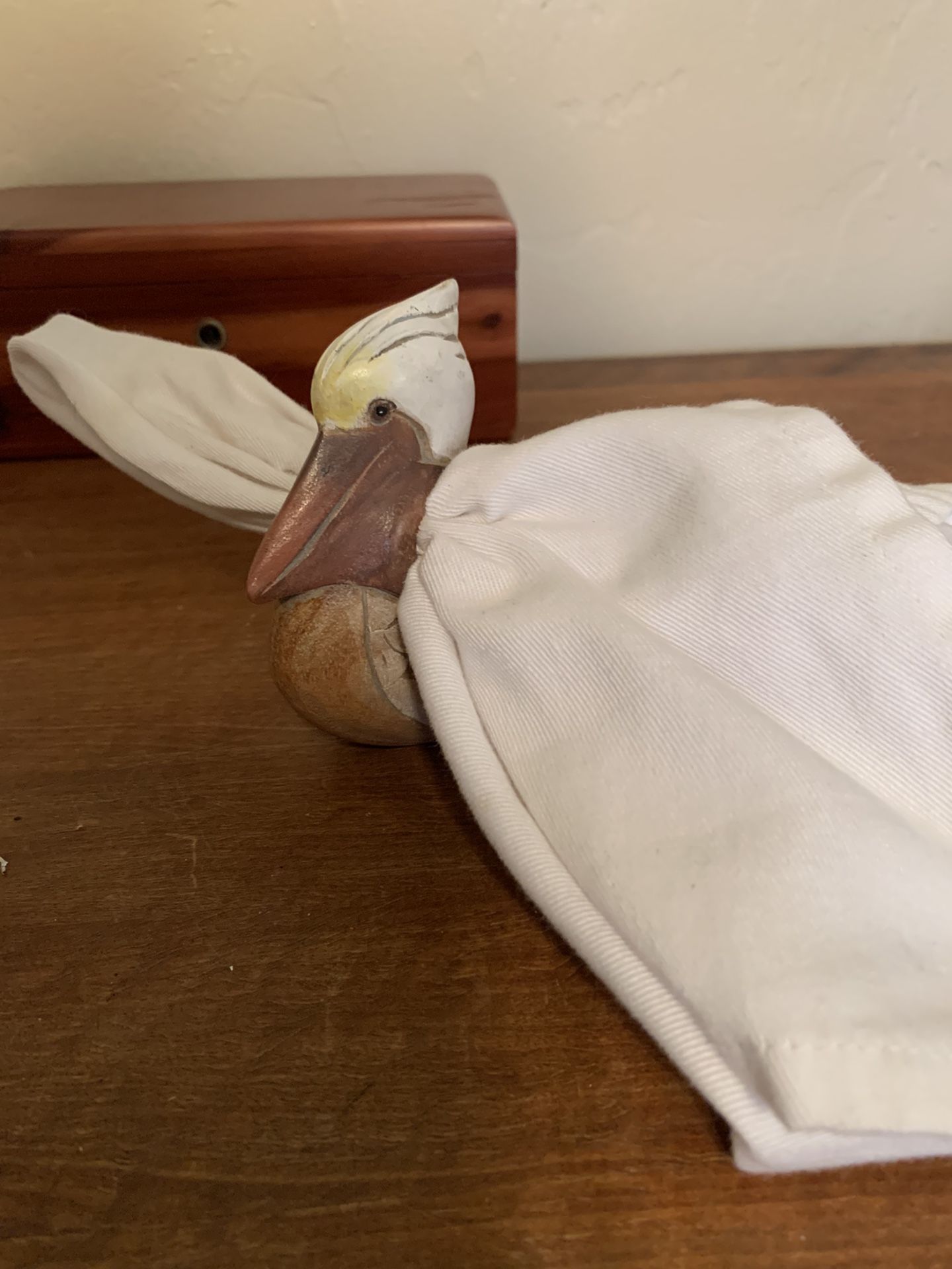 4 wood pelican napkins rings