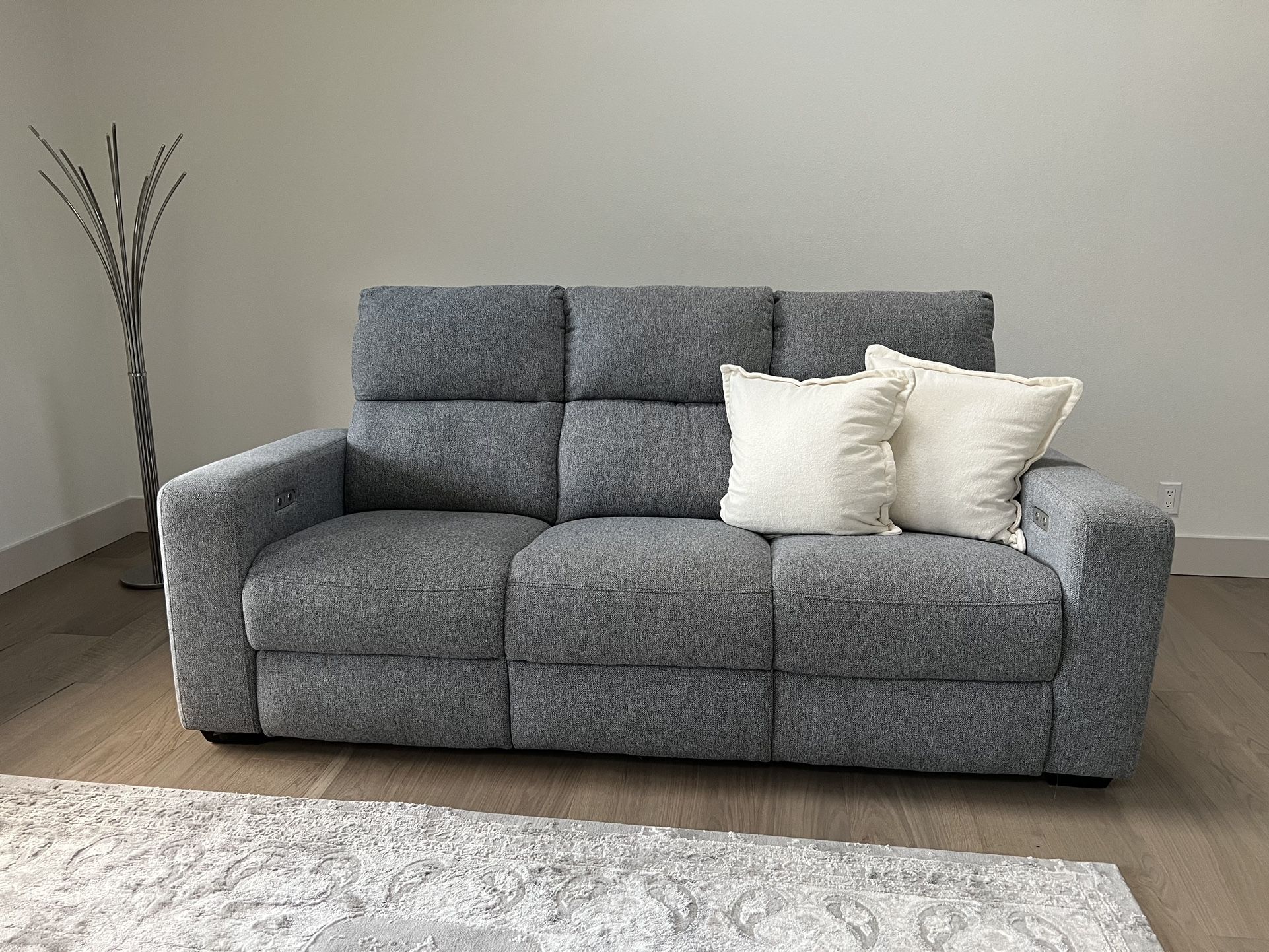 This exquisite sofa is made of very high-quality material, in an elegant gray color that will suit any style and make your home more comfortable. The set also includes an elegant mirror with lighting that will add beauty to any room.