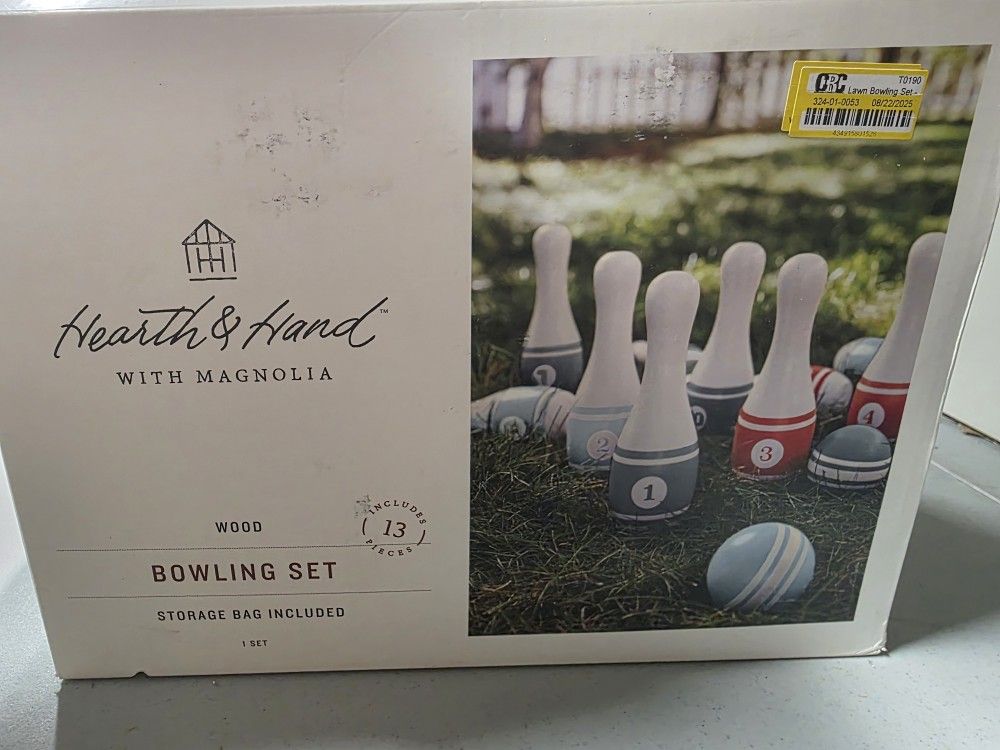 This is a brand new wood bowling set. Comes with carrying bag. Never used. Perfect for families and bowling lovers.