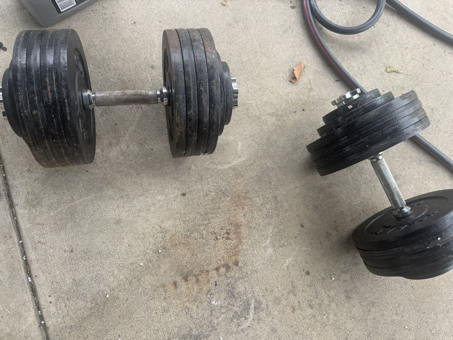 Adjusted dumbbells 95 pounds of plates $110 each $200 for both