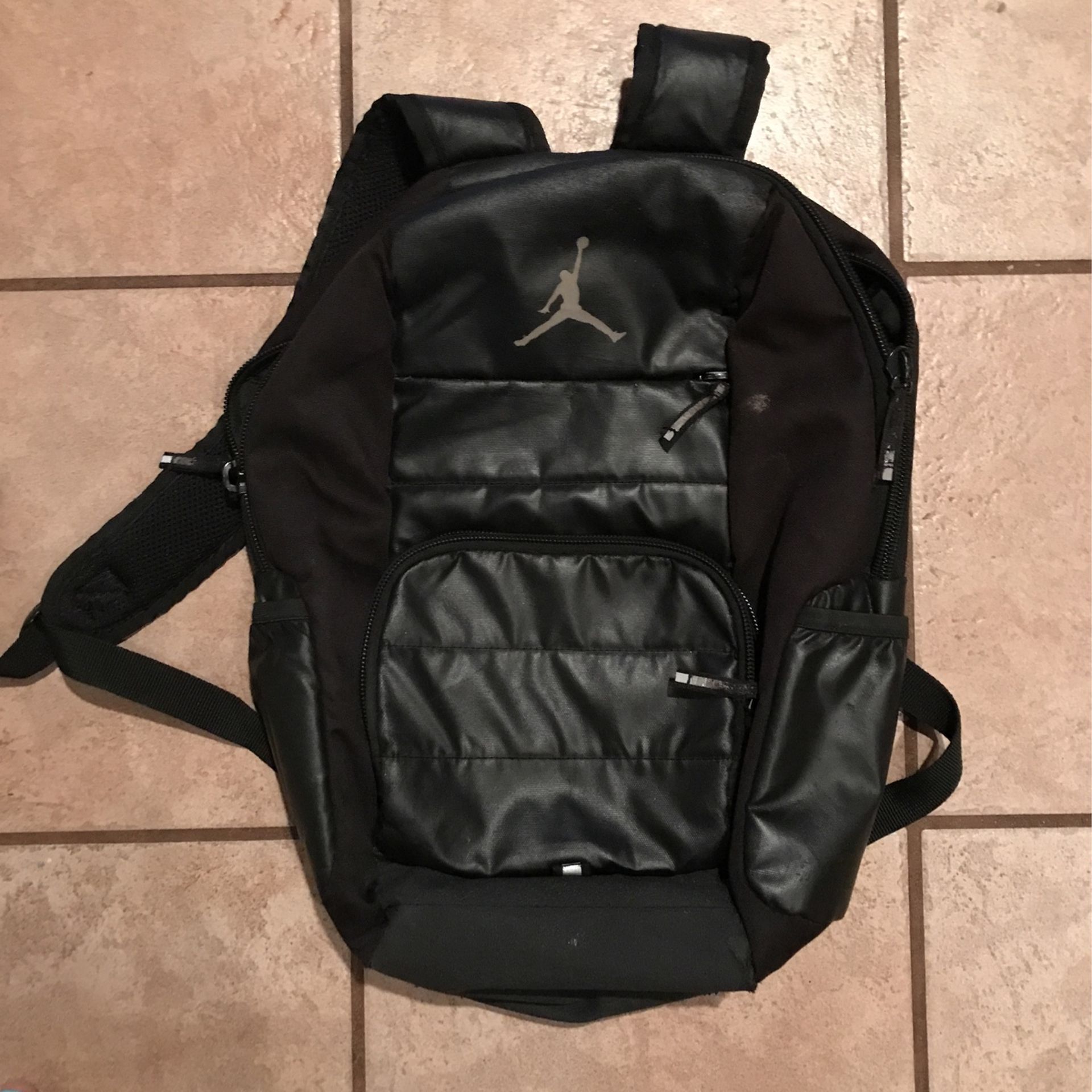Some wear on the bottom and handle . Slick looking bag. Water bottle side pocket front pocket laptop pocket