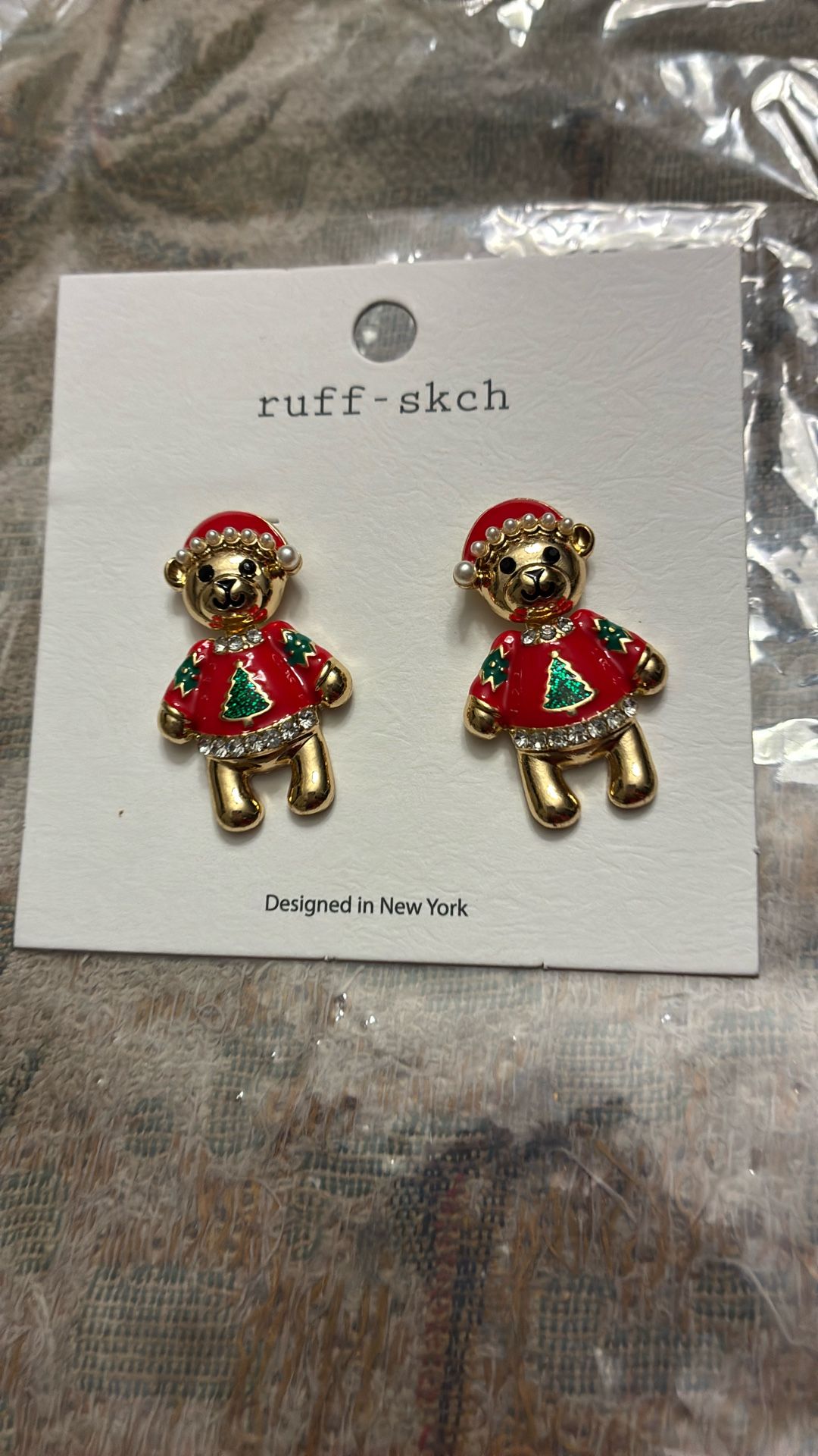 Cute and New Christmas Bear Earrings on Pad! By ruff-skch. Cash only please!