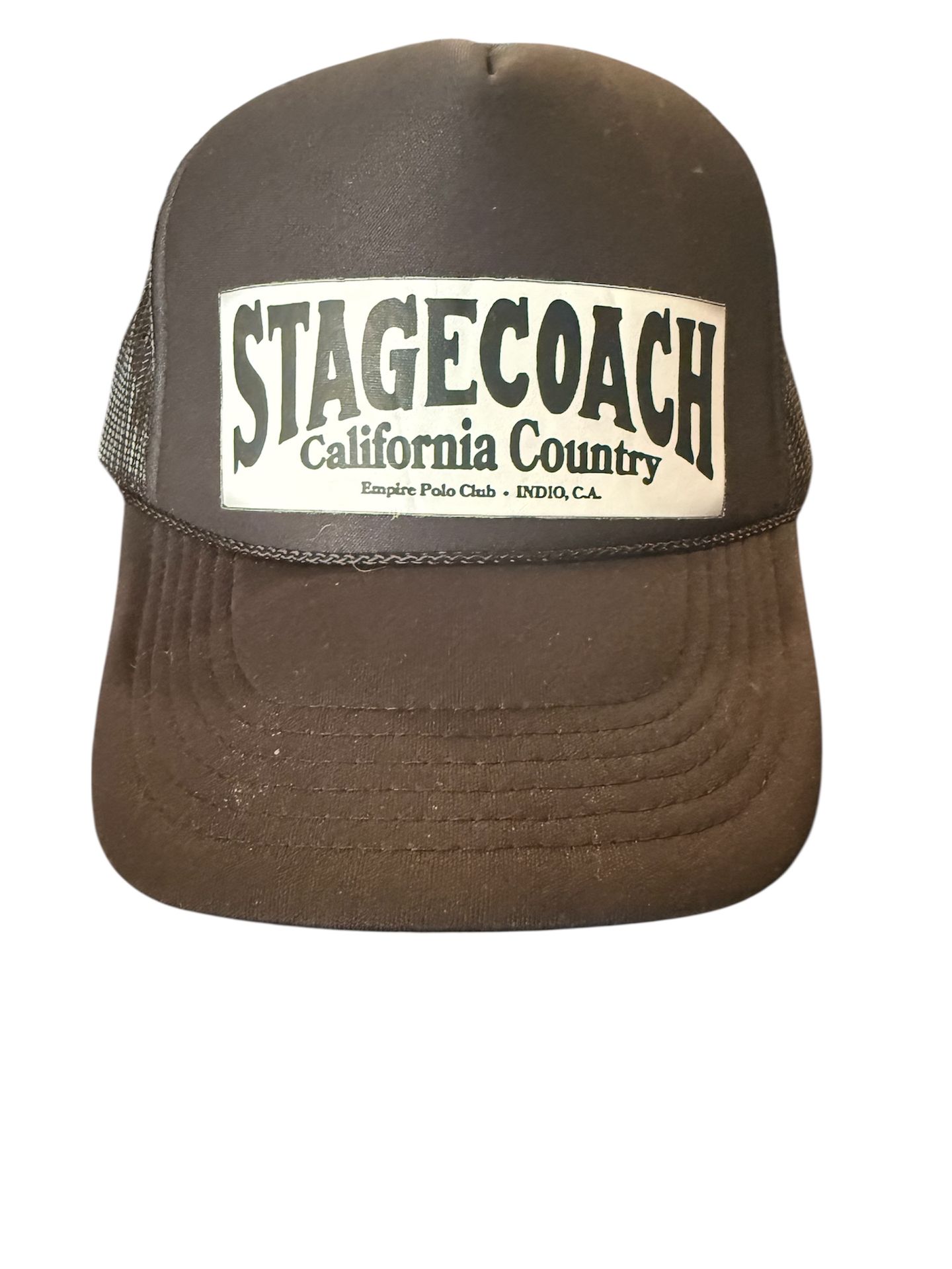 This hat sold for $60 at stagecoach 2025. It’s a black trucker hat, nylon with mesh backing snaps, white and black logo unisex never worn.