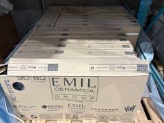Tile Gray tile w/ brushed stone-look finish, size approx. 11 13/16 x 23 5/8. 17 boxes