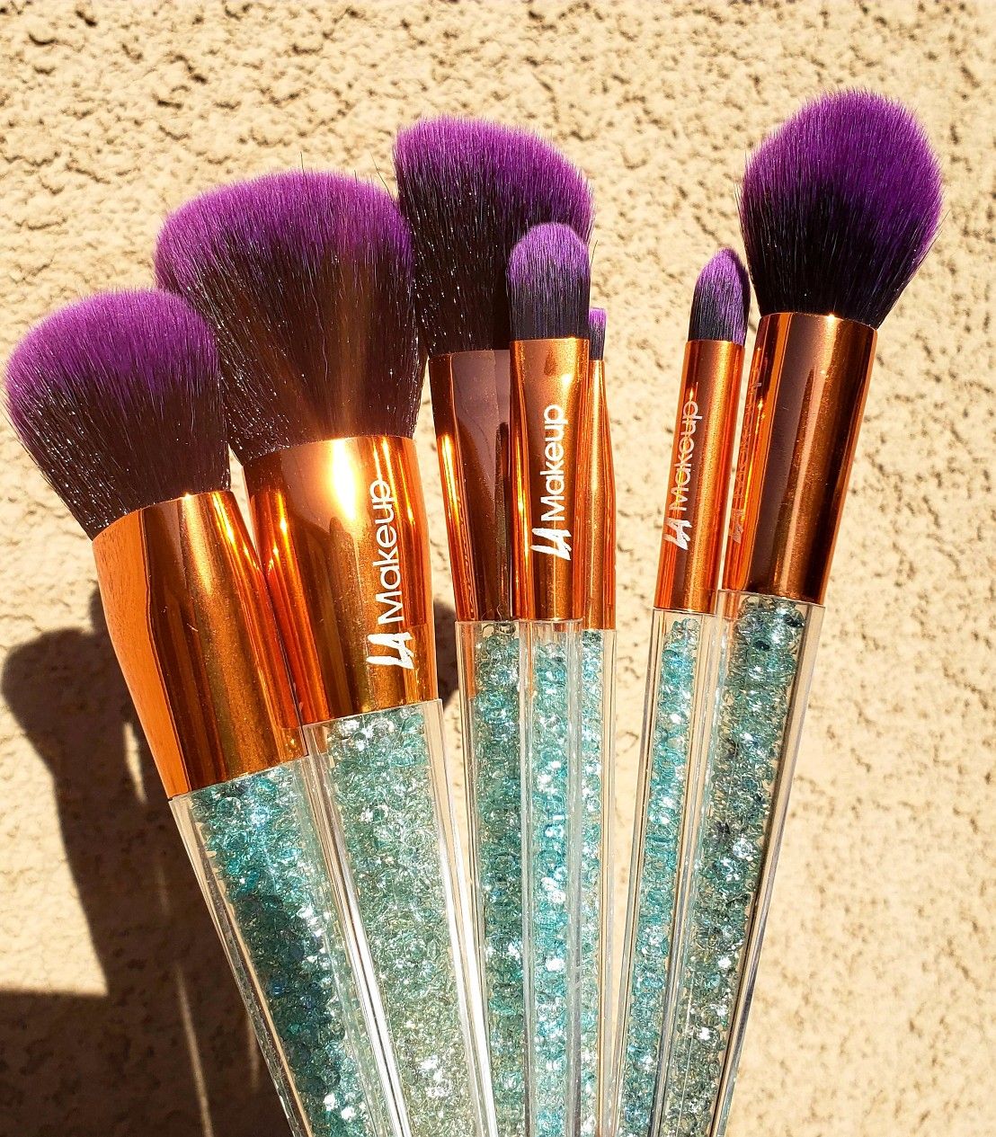 Blue unicorn makeup brushes full 9f crystal. High quality beautiful brushes La Makeup