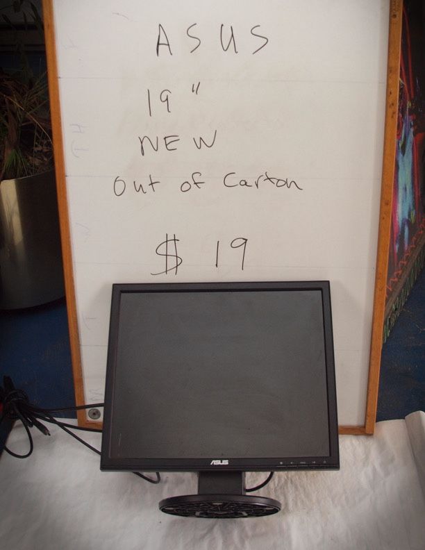 19” New out of carton Power and connection cables included Plus 1/2 acre other office furniture deals