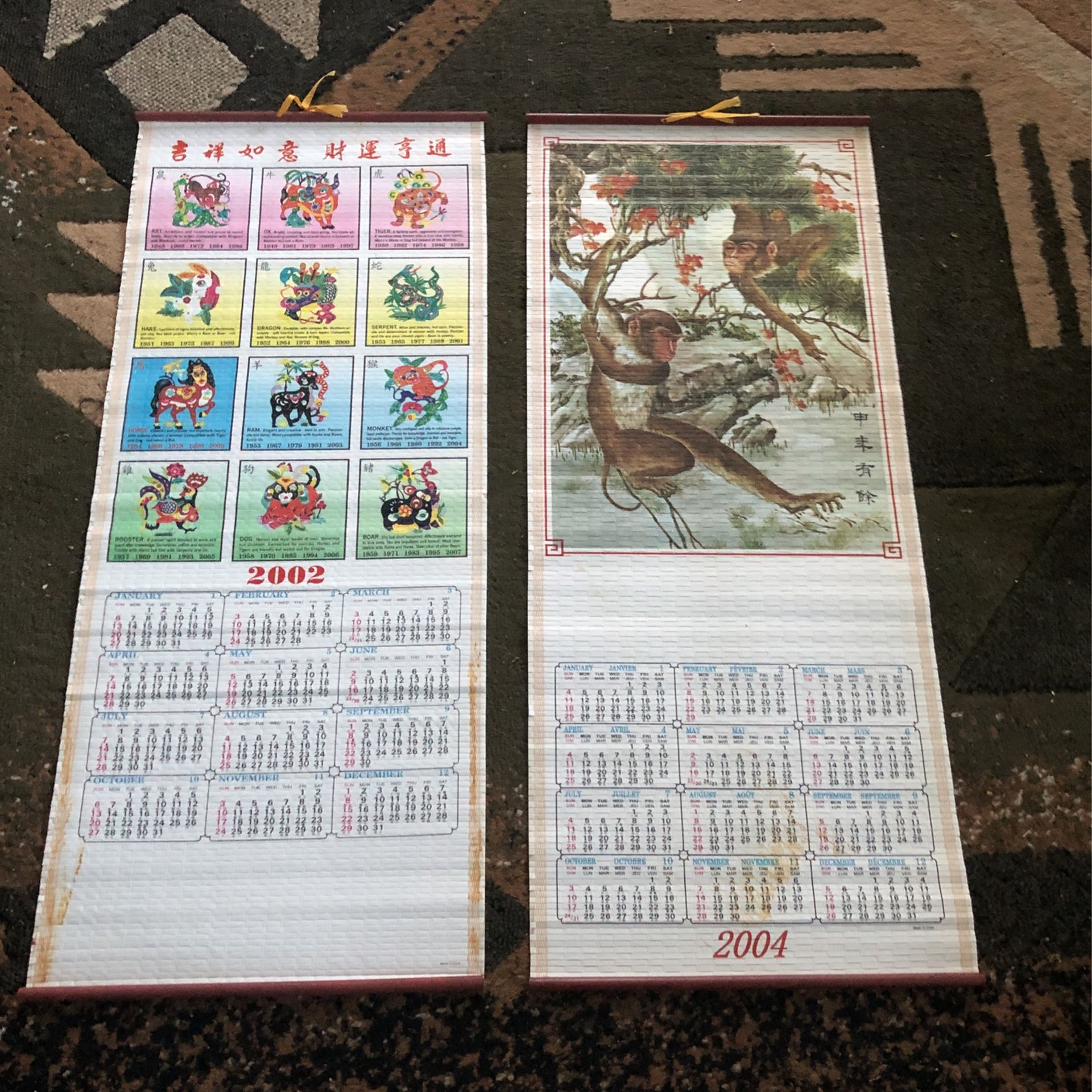 Old japan calendars from 2002 and 2004 the 2002 calendar is in perfect shape,the2004 calendar is in great shape but had a marking on the bottom.