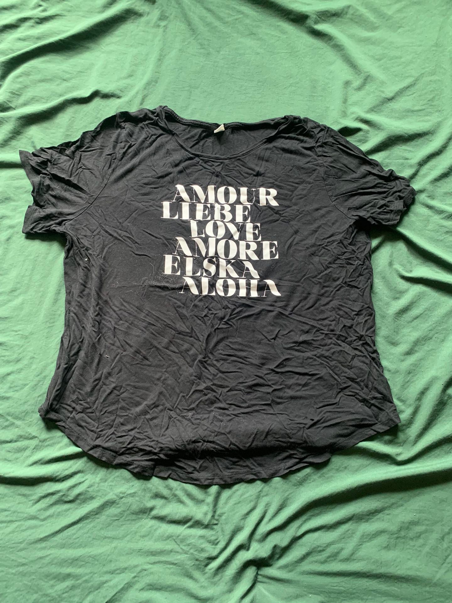Women’s old navy black graphic tshirt Size XXL Writing- “love” in different languages