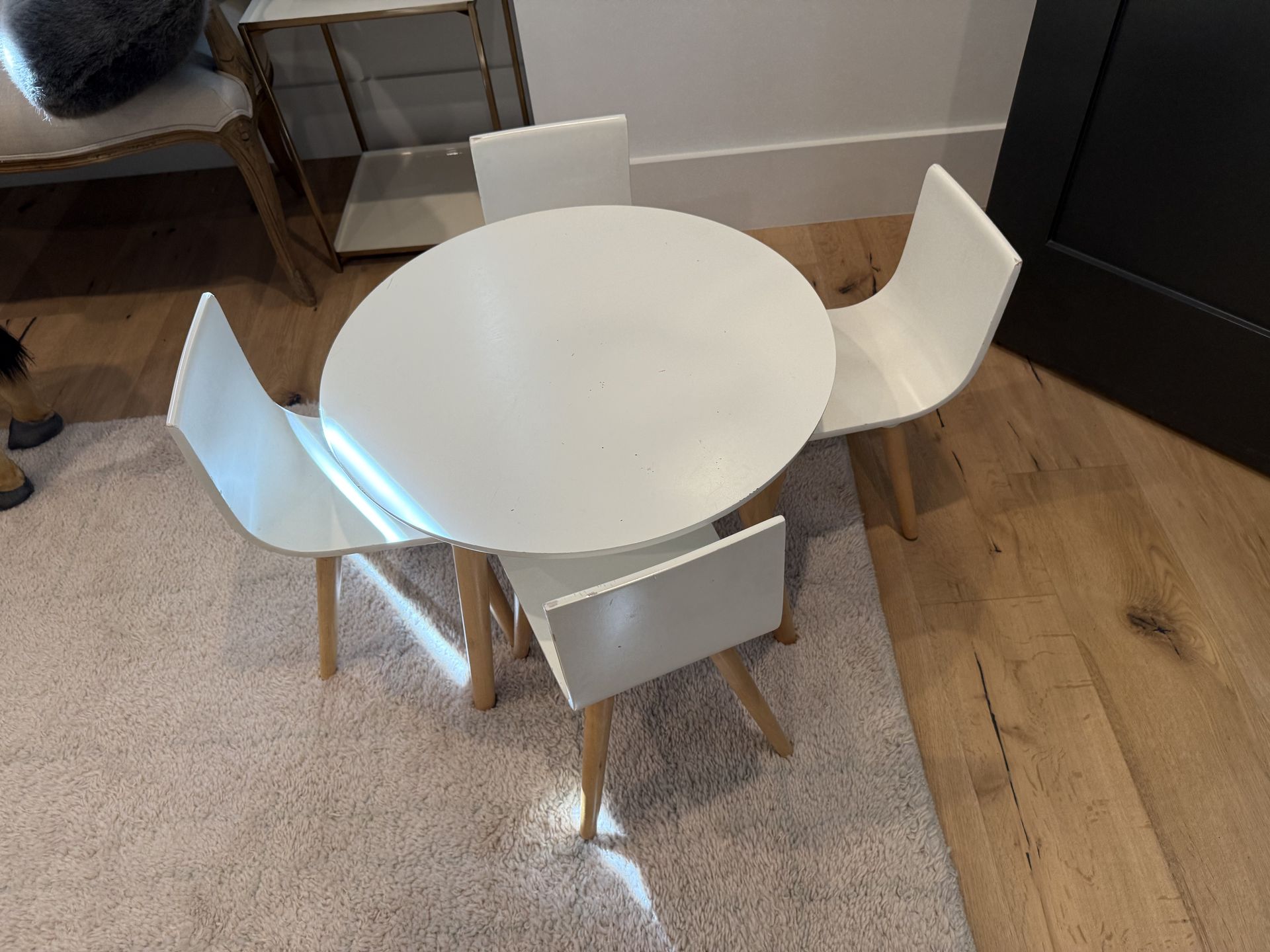 Definitely a well loved set. Has dings and scratches. Great for 6 and under. Can be used outside or inside. We loved it!