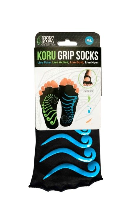 PBLX Open-Toe No-Slip-Grip Yoga Socks w Targeted Traction Design. Brand new green and blue. Perfect for any surface to be sure you don't slip. Medium/Large woman's show size 7-12, men's 6-10 Made from polyester/cotton