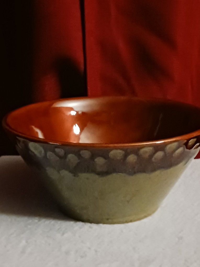 Oven Safe Serving Bowl, RARE Green and Brown Stoneware Bowl, OVEN To TABLE Bowl, Olive Green Oven Proof Bowl, Oven Safe. See pictures for they are part of the description. 3/23