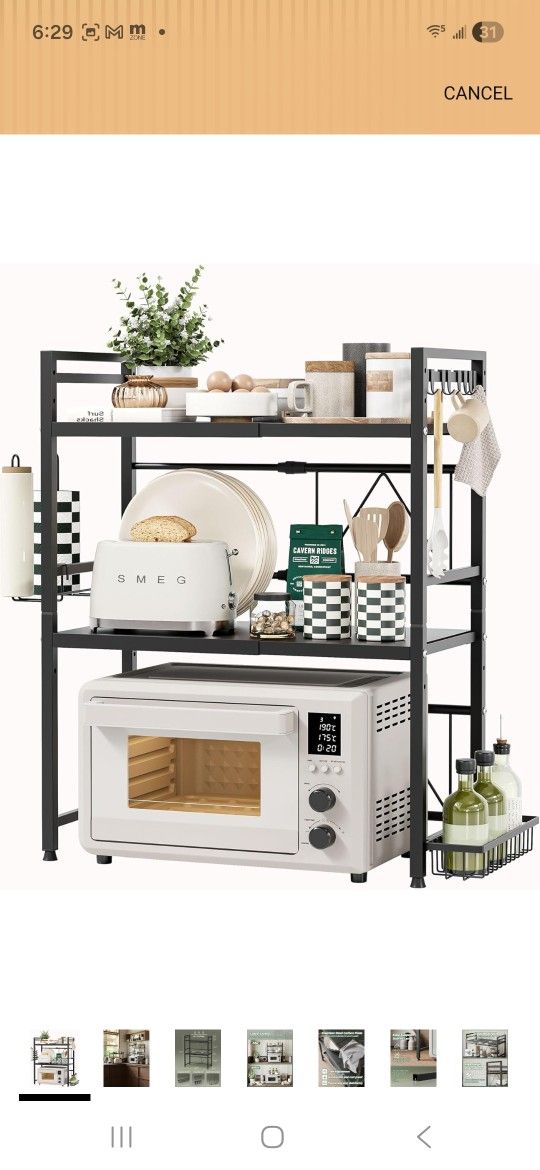 NETEL Expandable Microwave Stand,3 Tier Metal Kitchen Countertop Organizer Shelves with Paper Towel Holder and Baskets,Bakers Rack,Microwave Shelf,Mic
