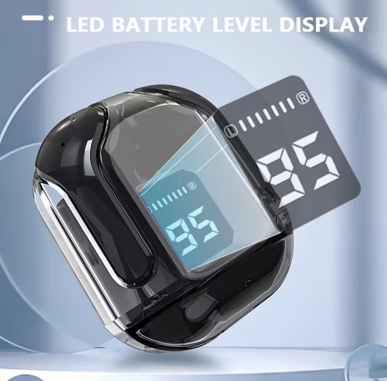 Fashionable Wireless Earbuds – Transparent Space Capsule Design (Black)