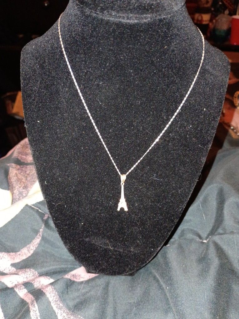 Sterling silver Chain 16in And Eiffel Tower Pendant