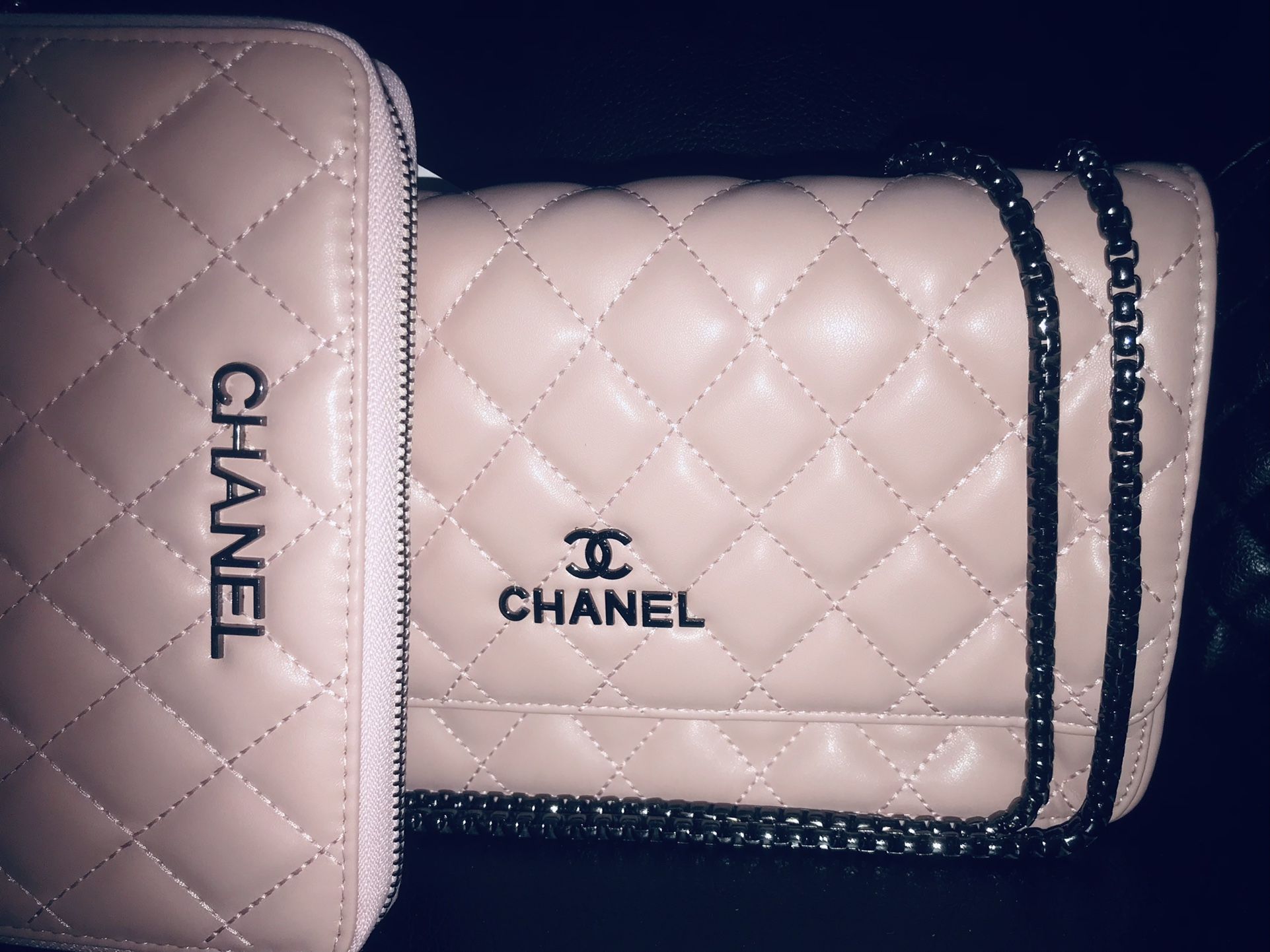 Luxary Pink Wallet & Chain Crossbody Set