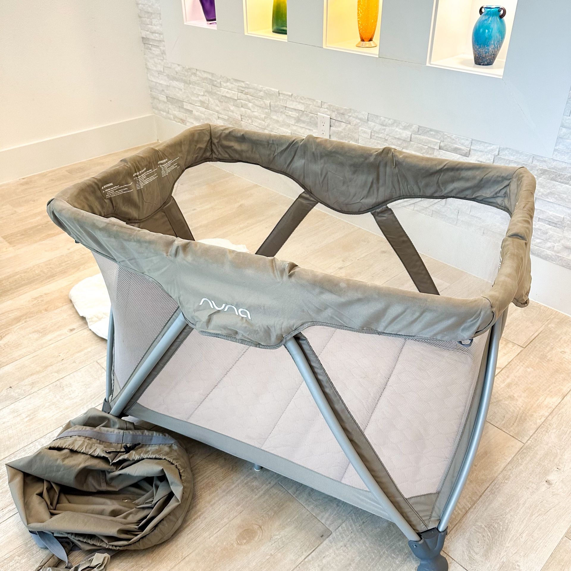 This pack n play needs a good cleaning but is AMAZING! It’s heavy duty and sturdy. Has a carrying bag, mattress pad cover, and a bassinet attachment net that raises the height for infants. I will reiterate that it does need a good cleaning on the edges as there are visable dirty spots Retails: $400