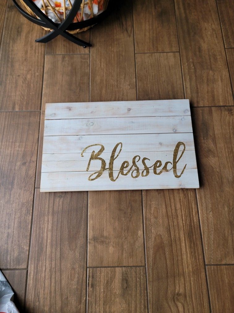 Wooden "Blessed" Gold Foil Rectangular Sign