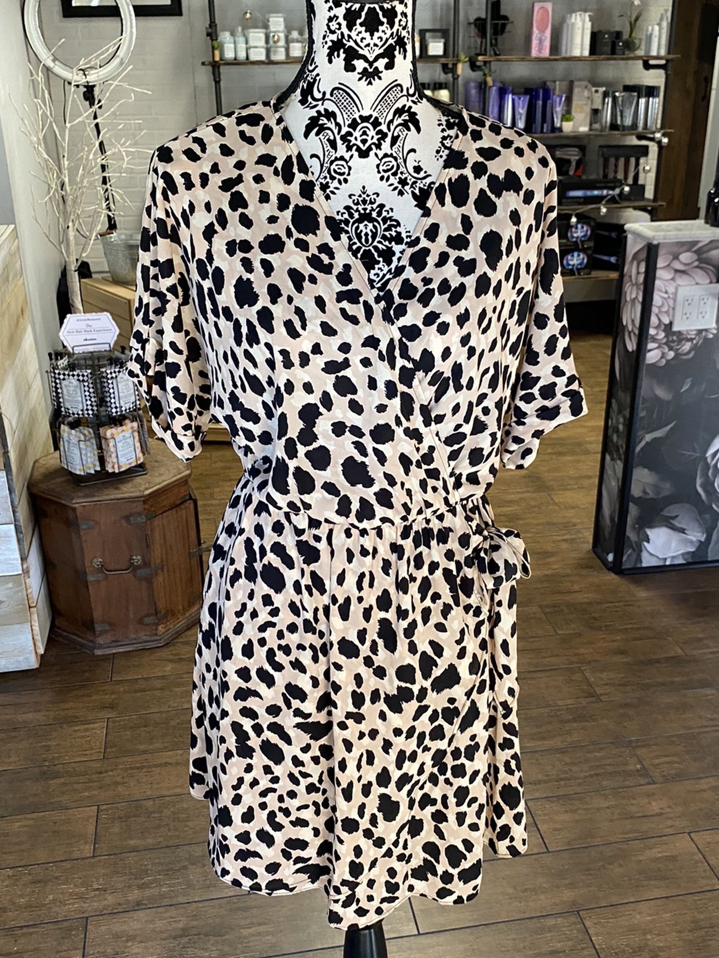 Blush colored dress with leopard print. New with tags. Salon and Boutique going out of business liquidation sale. Retails for $36 asking $18, OBO.