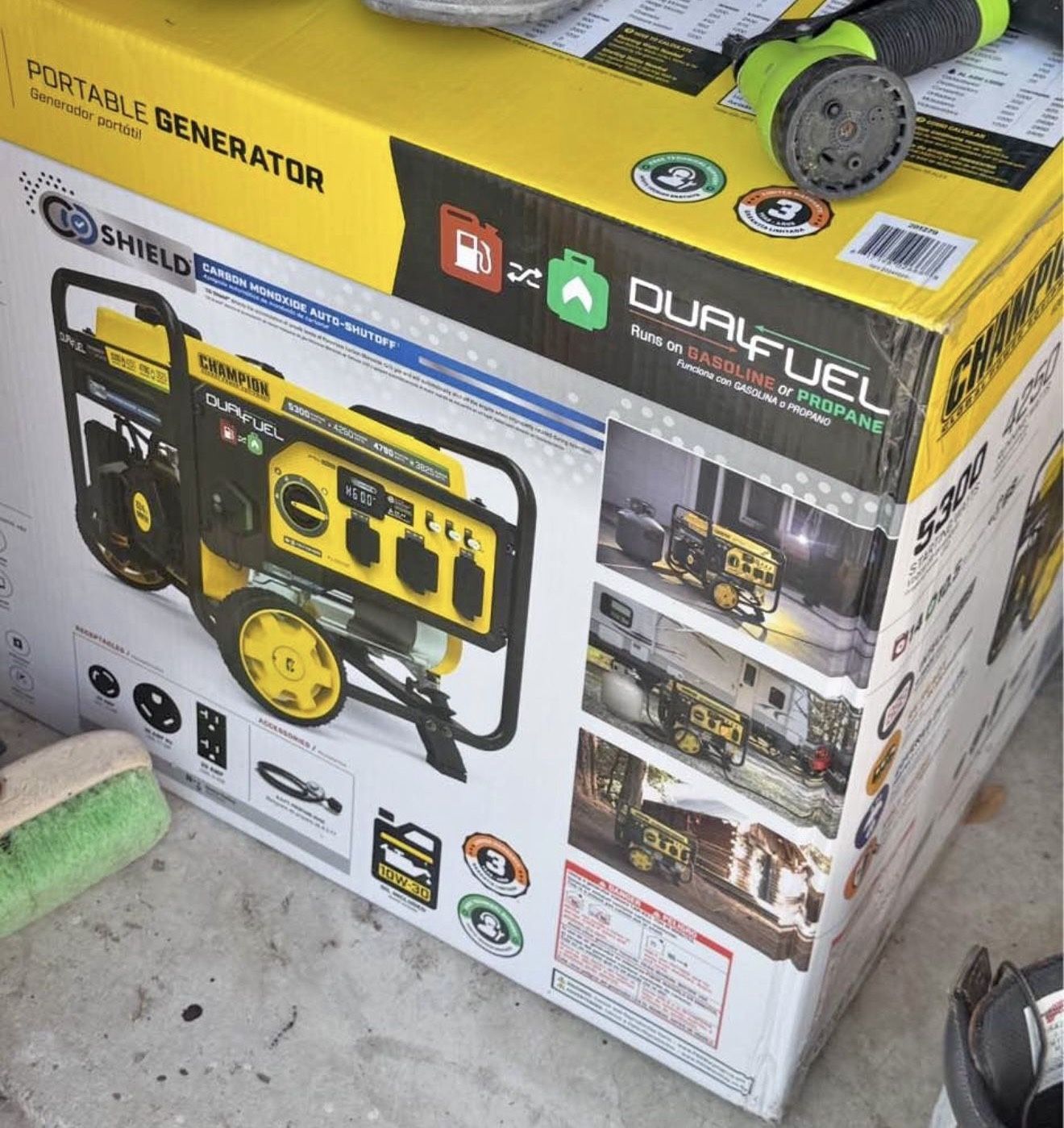 Brand New in Box $500 OBO 5300/4250-Watt Gasoline and Propane Powered Dual Fuel Portable Generator with CO Shield