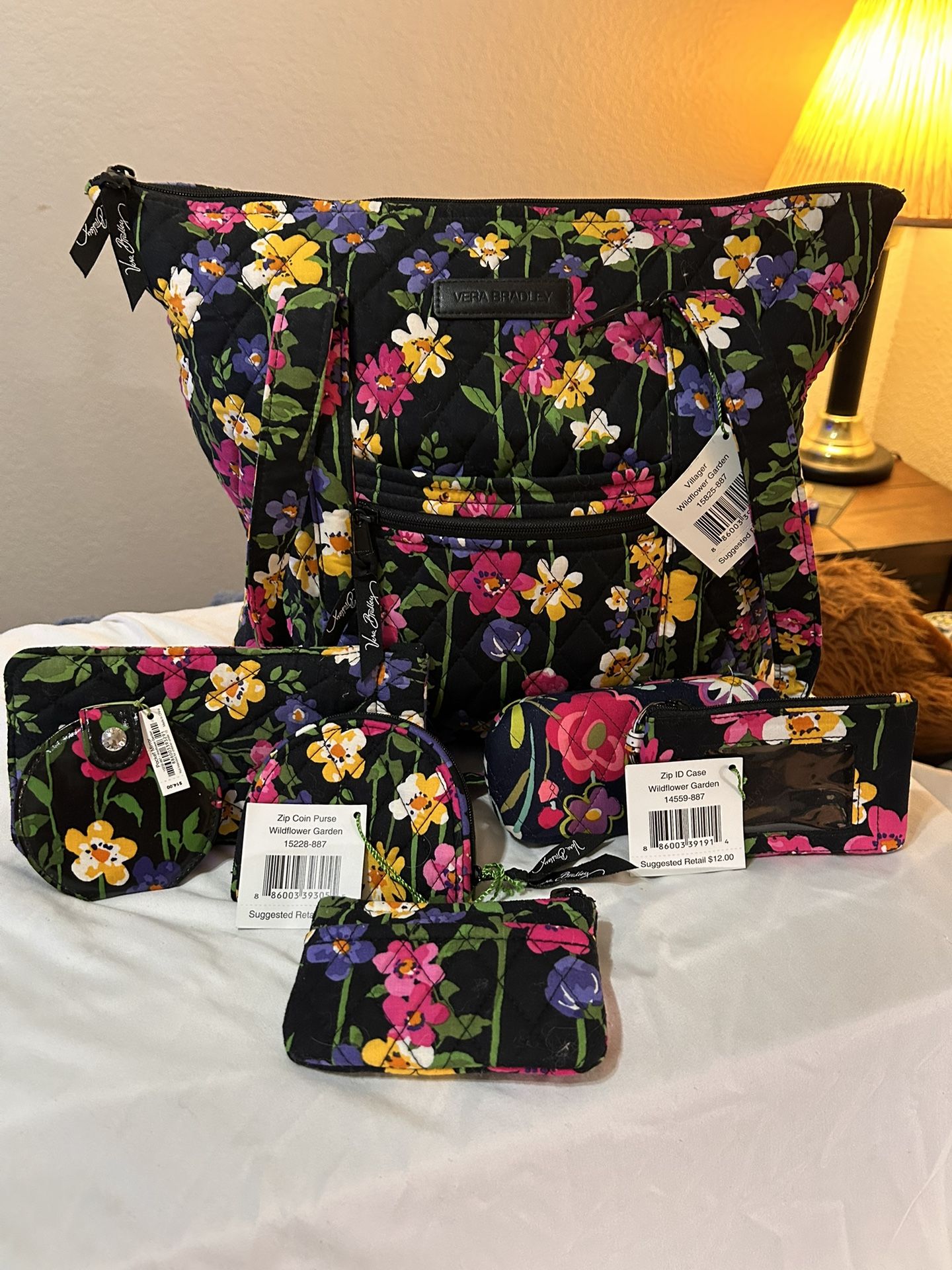 Tote style purse with matching wallet, make up and coin case and other matching accessories