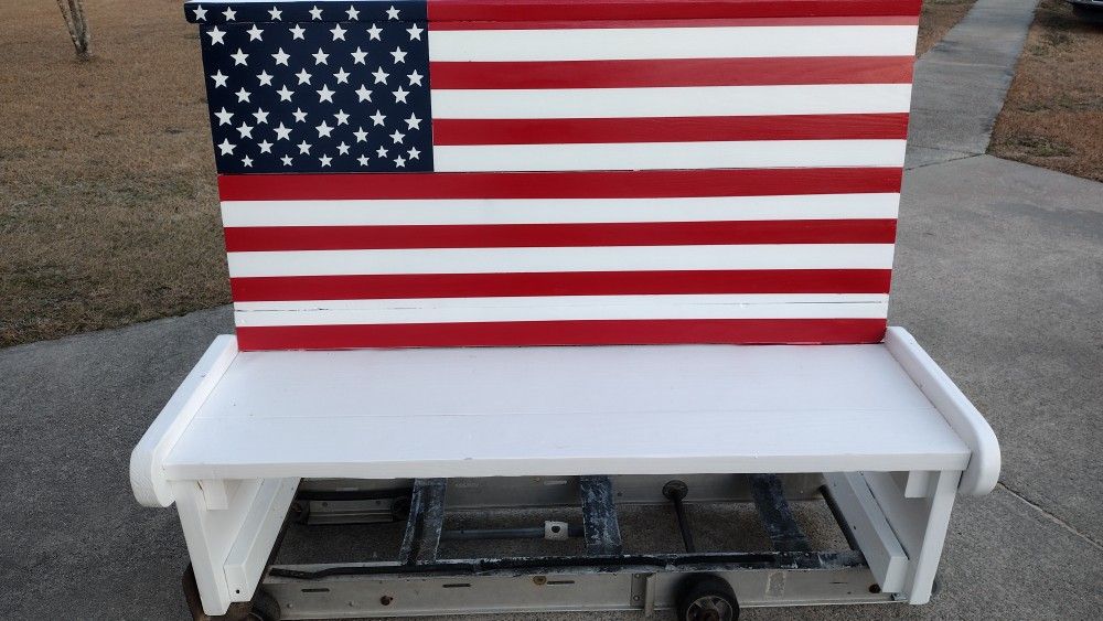 Patriotic wood bench. Hand painted pine wood bench. Great for front porch.