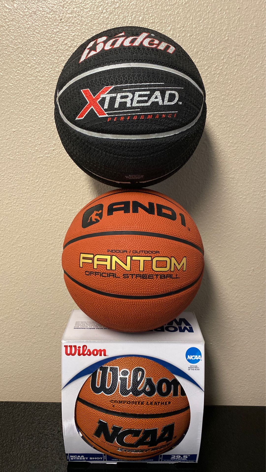 Two new indoor/outdoor basketballs. The black Xtread on the top is slightly used. $15 each