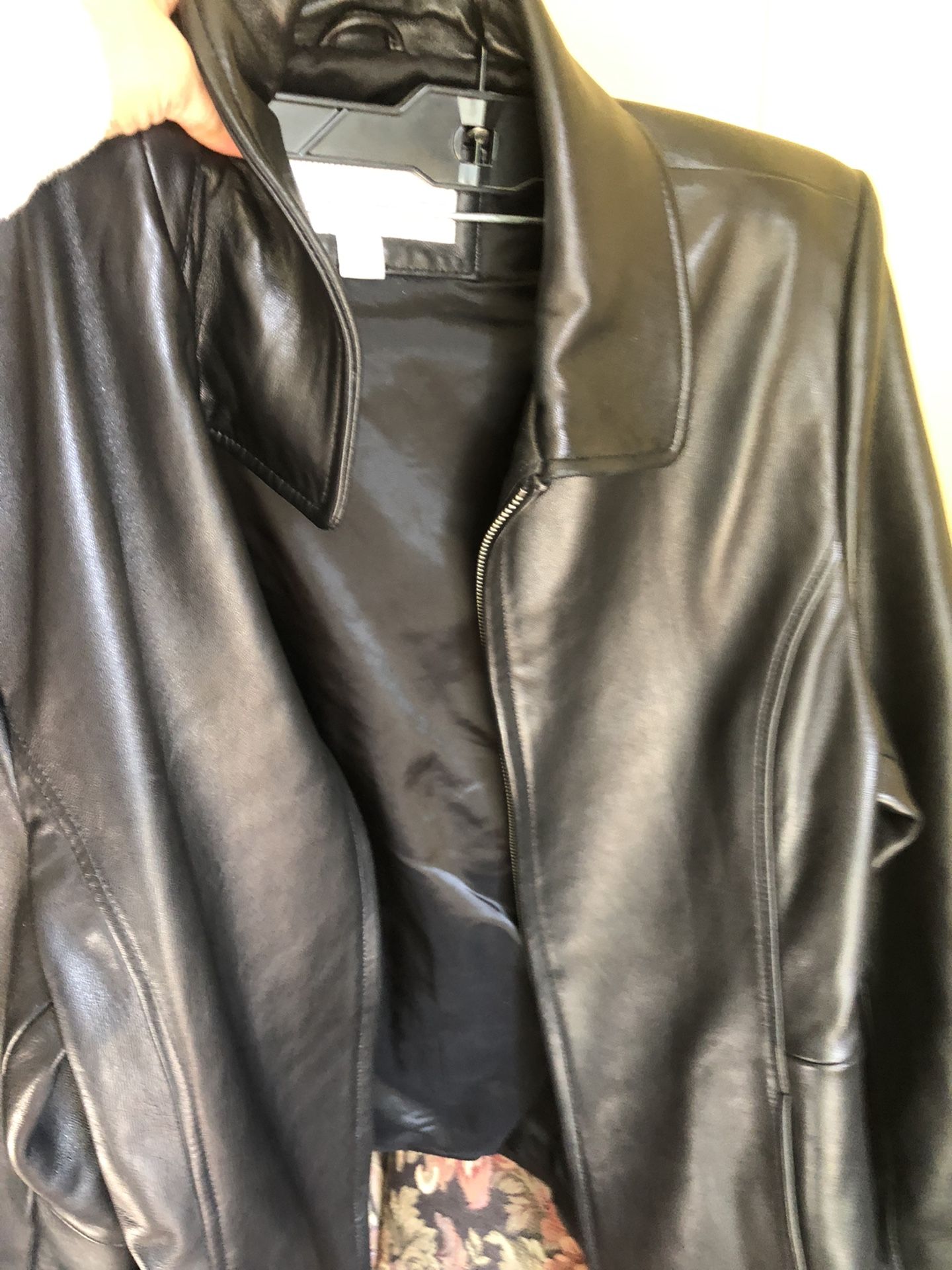 Very good condition Black leather jacket size large $35 Others pieces $4 each for fall