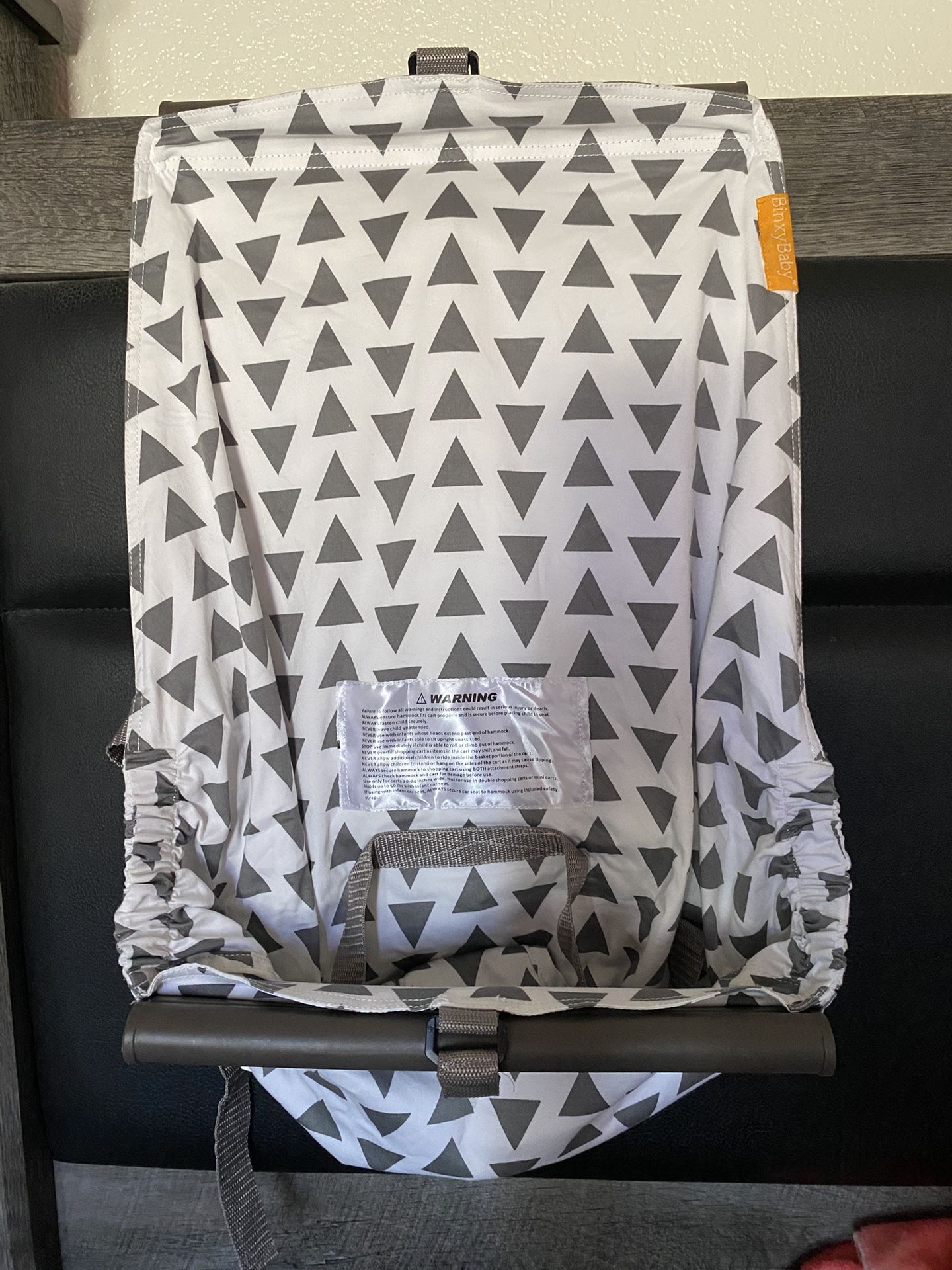 New very sturdy only for baby’s who can’t sit up also has a car seat strap to hold car seat in cart while shopping