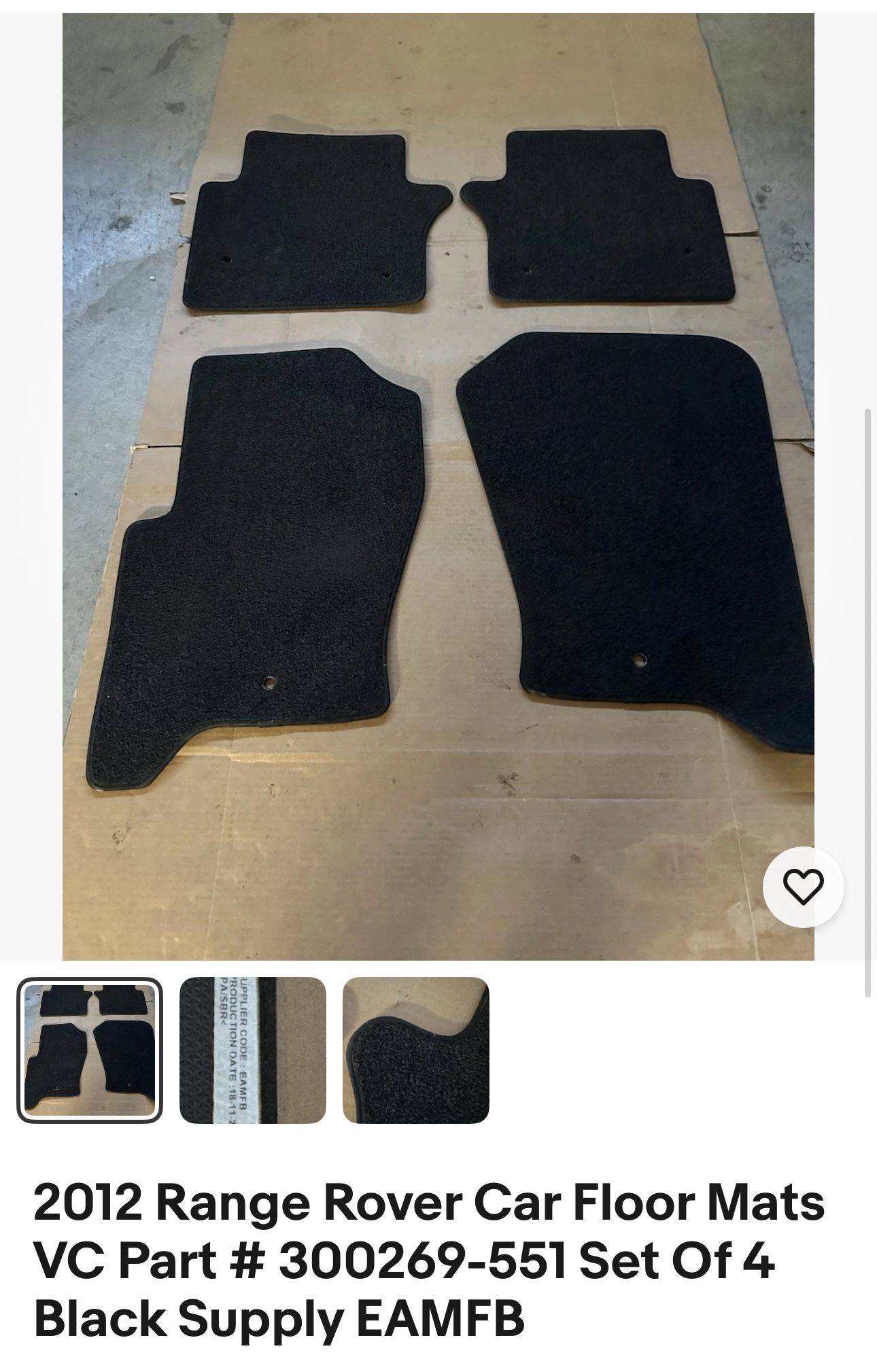 up for sale is a brand new set of Range Rover Carpet mats. we took them out day we purchased vehicle upgraded to Rubber they have been in box in garage ever since