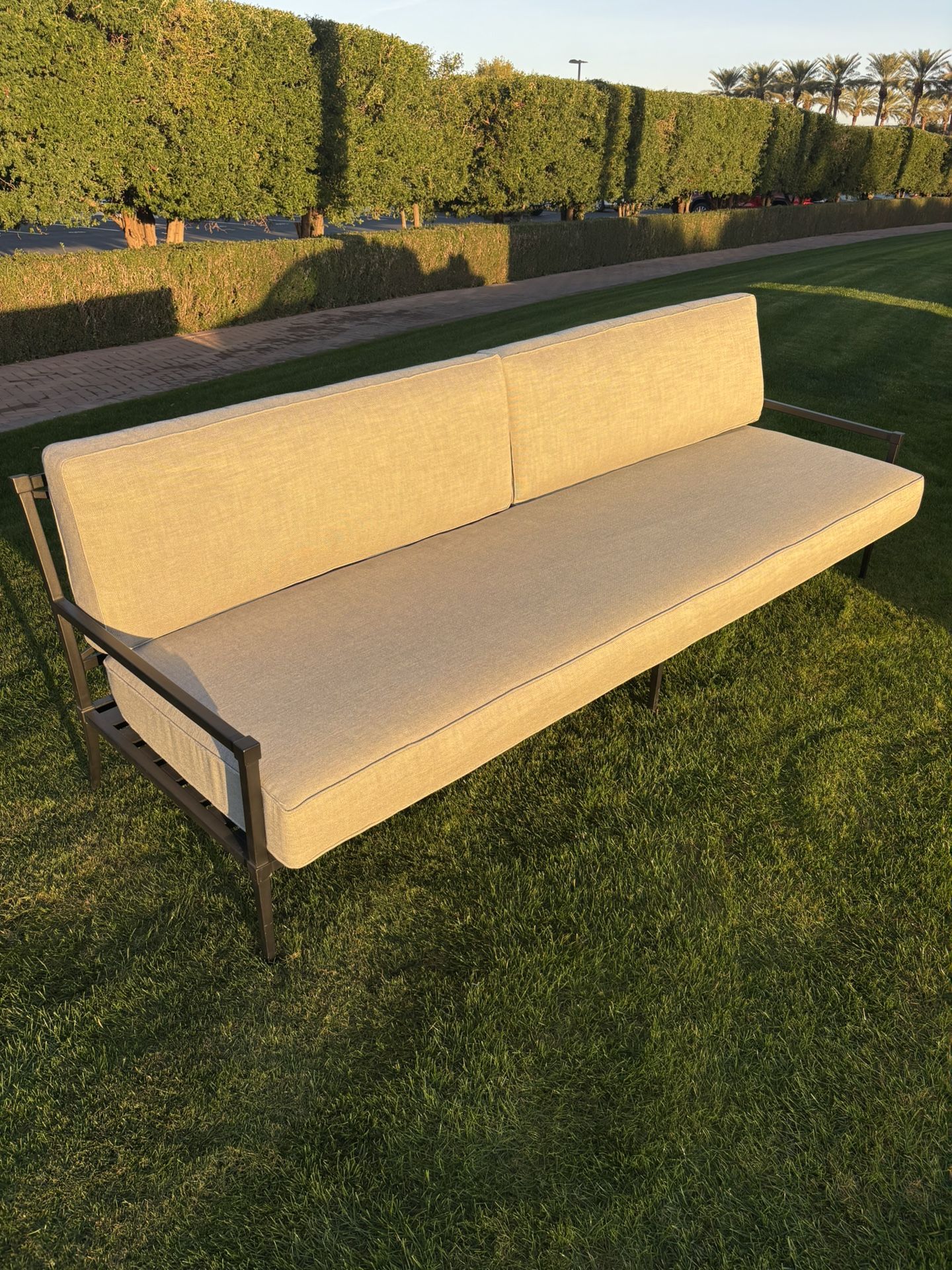 NEW/NEVER USED LARGE OUTDOOR SOFA - 100 INCHES RH TROUSEDALE ALUMINUM 100 INCH SOFA PERFORMANCE FABRIC COLOR FOG CUSHIONS RH QUALITY, DURABILITY AND COMFORT DELIVERY POSSIBLE RH member price $4,000.00 + $340 tax + $300 delivery = $4,740.00 SAVE $$$ arhaus cb2 patio outdoor pool backyard furniture