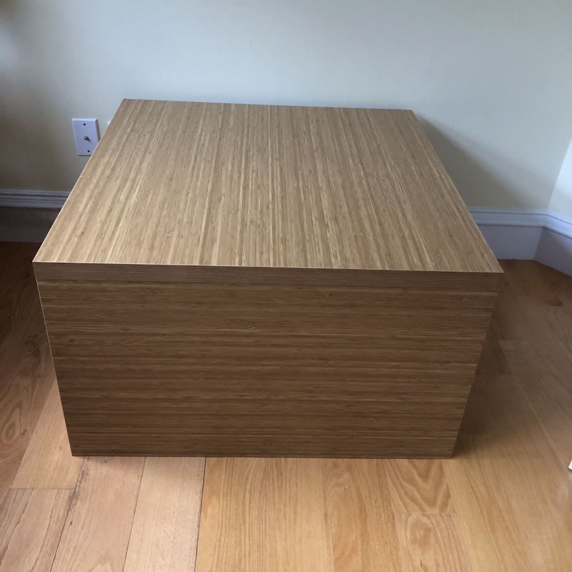 32x32 with a height of 19.5, never used, only one corner has a small dent. A contemporary design., which can be used as a coffee table in living or family room, or a sitting bench at the center of the master closet. Good and fashion furniture, very very sturdy. You will like it. Asking $58 but negotiable.
