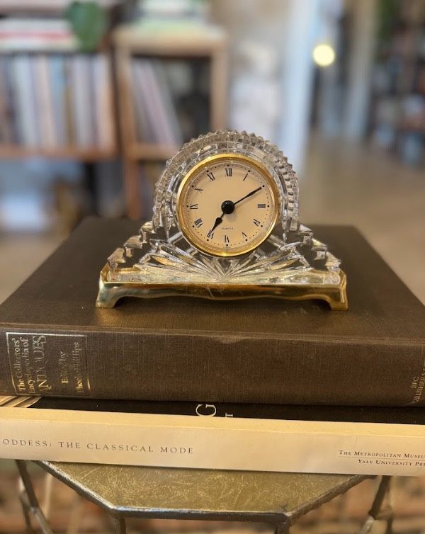 Add a touch of timeless elegance to your space with this beautiful crystal mantel clock. Featuring a classic Roman numeral face and a faceted crystal design that catches the light, it’s both functional and decorative. Perfect for a bookshelf, desk, or mantel, this piece brings charm and sophistication to any room. Unsure if it is working. The measurements of this item are 6.5"x1.5"x4.5", and it weighs 1lb 14oz. If you’re interested please send me a message, serious inquiries only. ITEM #1071